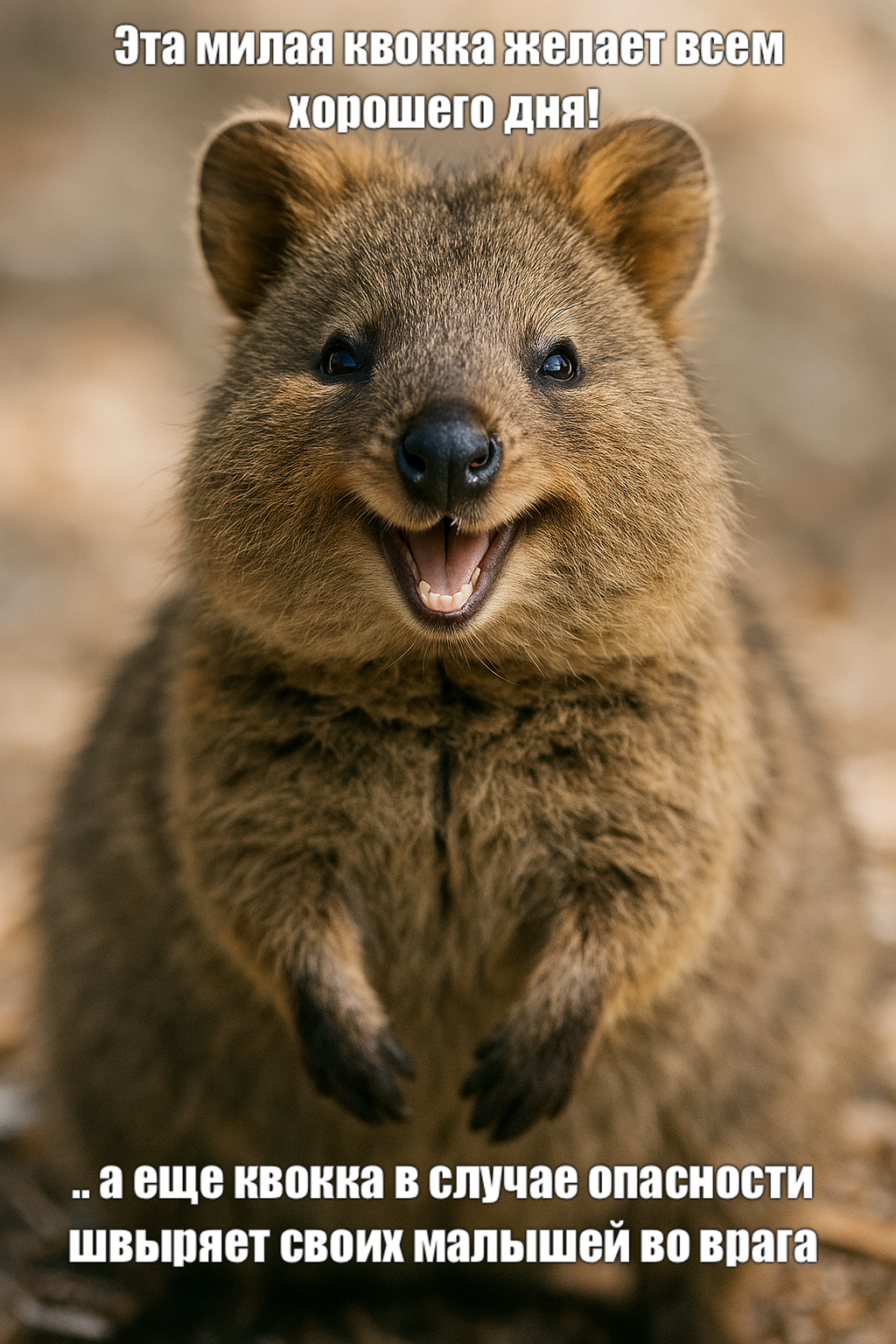 16 AnnKayWrites Юмор Привет от Квокки! 2 месяца назад Квокка Юмор Животные Мемы Сатира Смех (реакция) Анекдот Позитив 2 Ещё 0