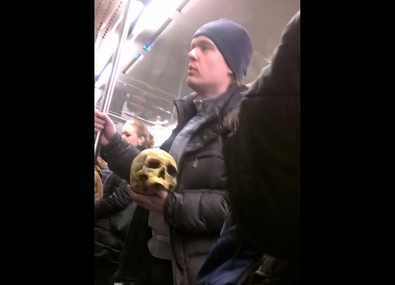 11 dobriyanon Привет от Йорика. 9 лет назад Не знаю куда этот парень с ним ехал, но смотрится он серьезно. Череп Метро