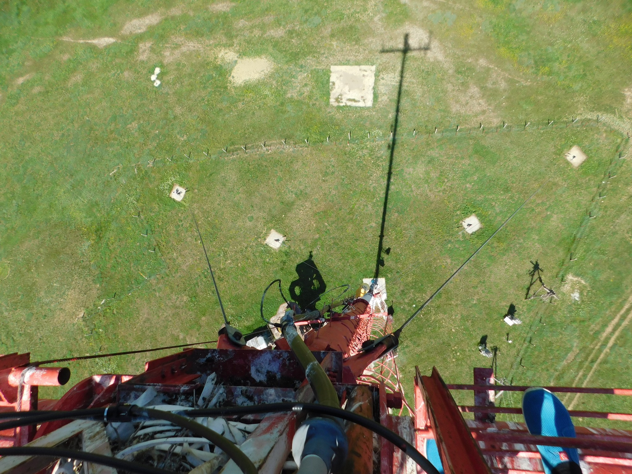 Р. Калмыкия, Маныч. Высота мачты 75м, жара +30, умеренный ветер. Нашел гнездо из шерсти и костей, прямо под стойкой антенны.