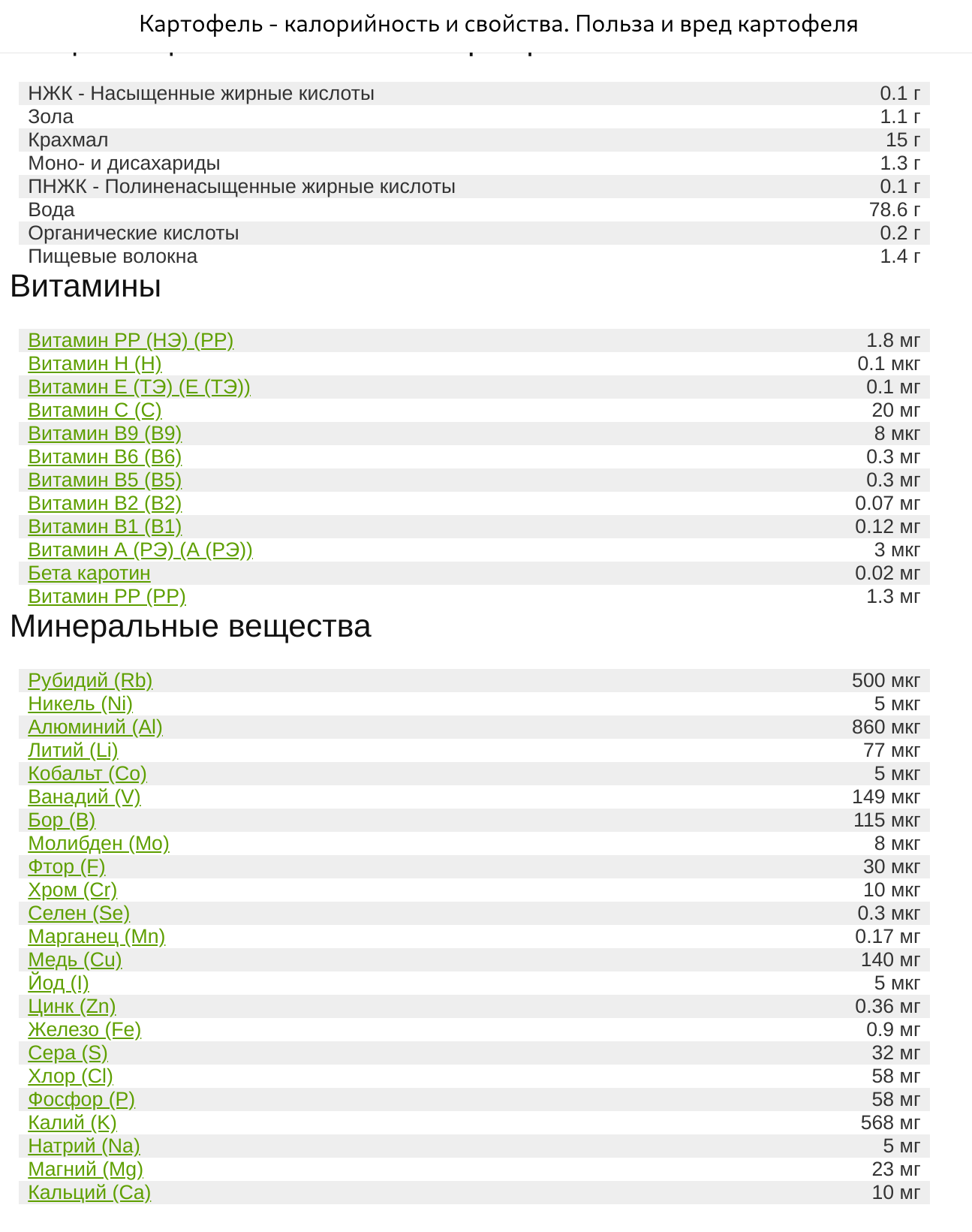 К барьеру к цифрам и формулам. Гидроксид алюминия - Al(OH)3. Массовая доля алюминия в нём - 35%. То есть, из 0,55 мг гидроксида алюминия организм получает 0,19 мг алюминия. Этот адъювант вообще не новое в вакциностроении вещество, применяется очень давно, изучено вдоль и поперёк. Между прочим, в 100 г картошки, например, 0,86 мг алюминия (раздел Минеральные вещества, третья строчка):