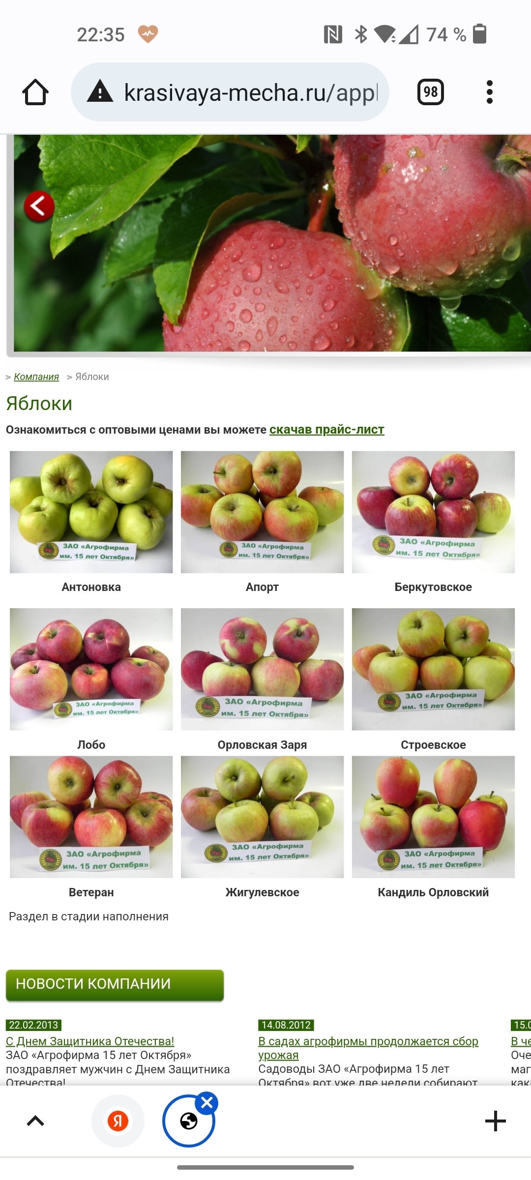 А так да, звоните, там люди приветливые. А отдел сбыта, вполне вероятно, сидит через стену с агрономом, и там не тяжело людям будет уточнить по поводу того, какие яблоки зимнего сорта вкуснее всего.