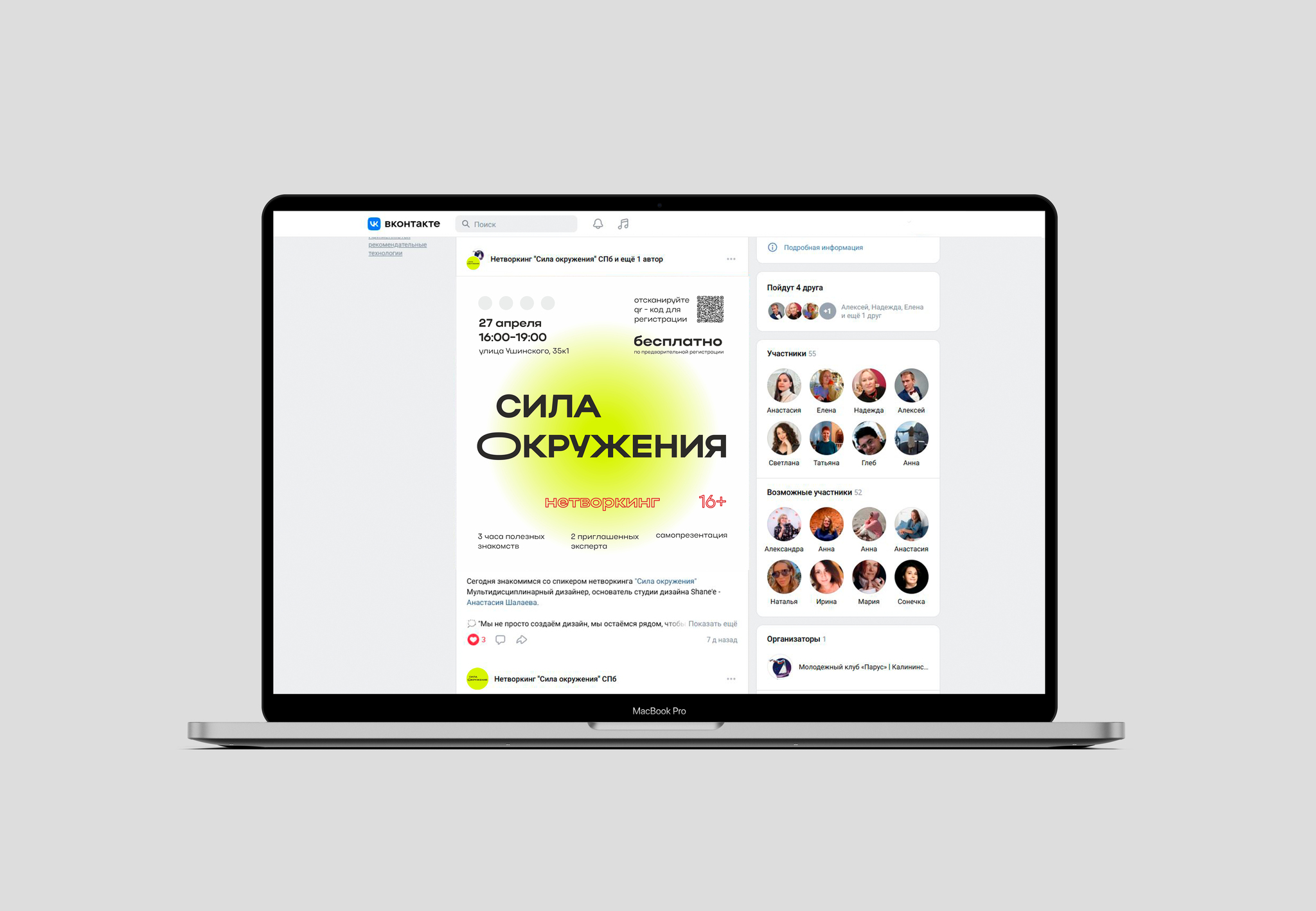 Задача: разработать айдентику для нетворкинга - логотип, подачу, оформление соц.сетей. Важно, что нетворкинг рассчитан на молодую аудиторию, необходимо сделать проект ярким, динамичным, но понятным.