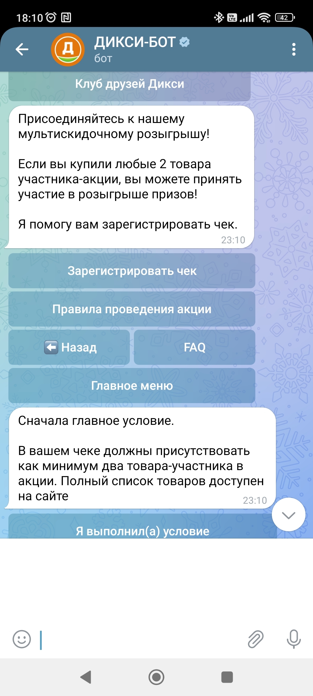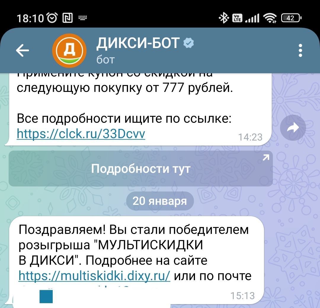 На прошлой неделе бот прислал сообщение: