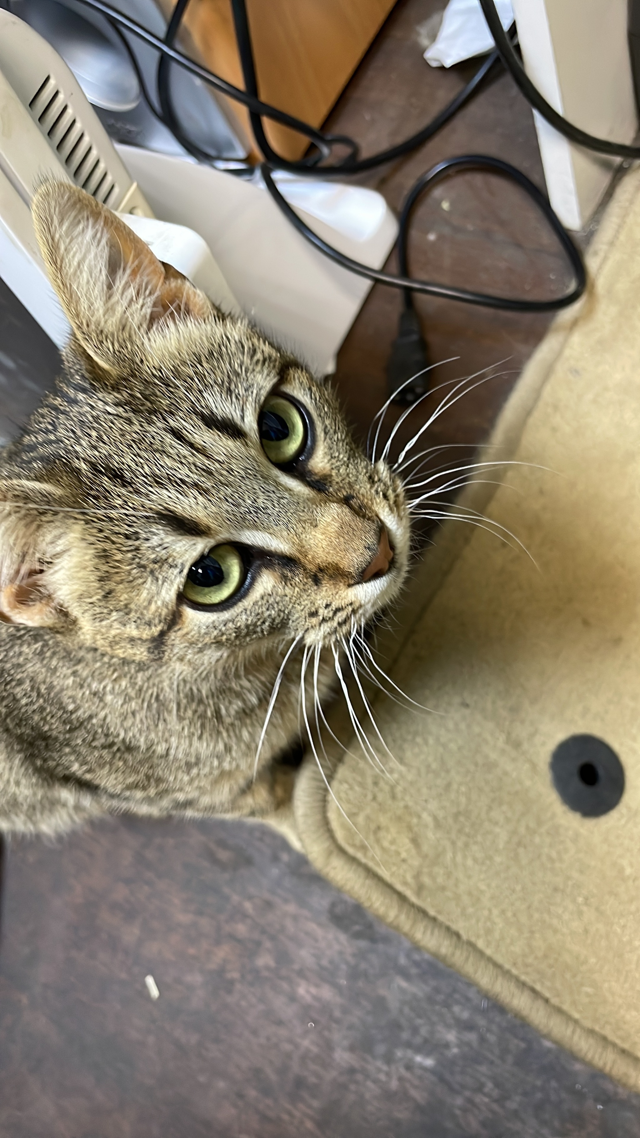 Пару месяцев назад во время прогулки с собакой к нам из подвала вышла кошка и начала ходить рядом с нами. Каждый день за редким исключением она гуляла рядом с нами каждую прогулку и потом уходила в свой двор в подвал. В прошлый вторник дошла с нами до нашего подъезда, села на лавочку и ждет. В итоге теперь у меня в магазине живёт Аська) Очень ласковая, умная кошка, которая с первого дня пошла в лоток.