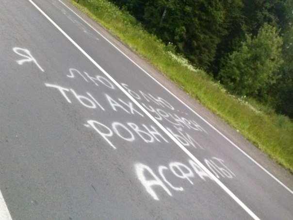 2026 improvelife Отношения Признание в любви асфальту! 11 лет назад В городе "поклали" новый асфальт, кто-то очень долго его ждал. Дорога Надпись на асфальте Любовь