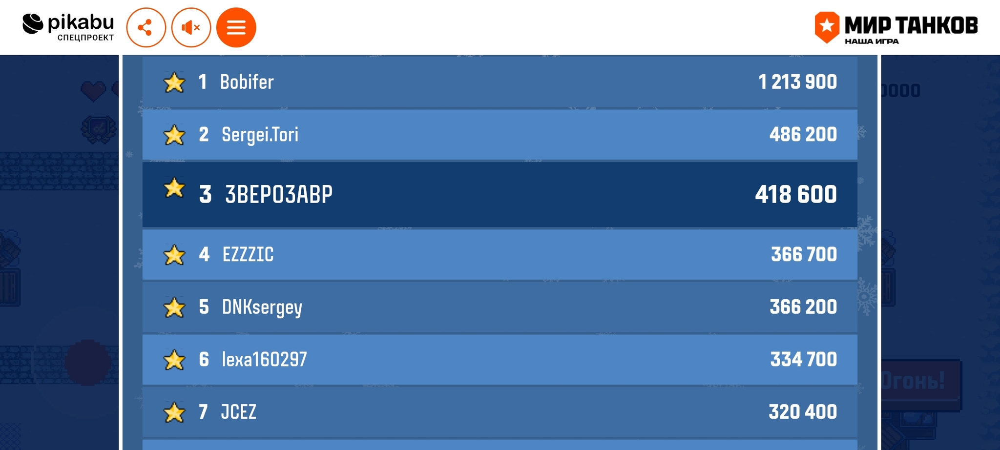 Игра уже недоступна. Надо было стрелять танчиком, чем больше килов, тем выше место. Просто нашел угол, где закрыт со всех сторон, линейкой заткнул пробел(стрельба) и оставил на ночь настреливать танки)