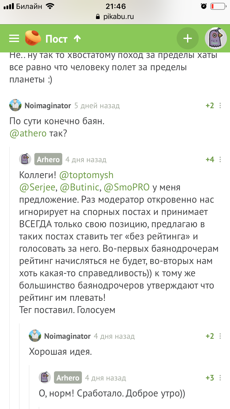 Эти данные позволят оценить правомерность действия модератора другим пользователям.