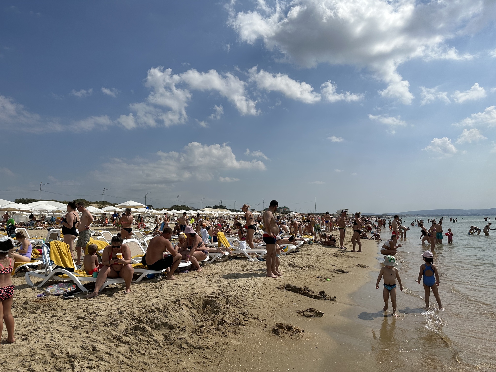 Такого пиздеца я не ожидал вообще. К морю даже подойти трудно - все лежаки стоят плотно друг к другу и прям у края воды. Хотя для лежаков есть специальные места под зонтиками, но отдыхающие прут их к воде доставляя неудобство остальным людям.