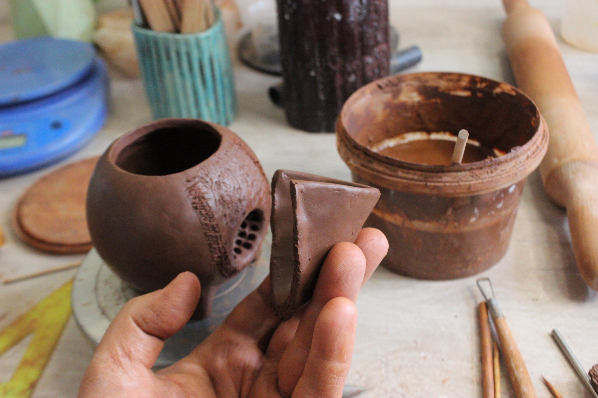 На местах склейки сделал насечки, нанёс шликер и приклеил.