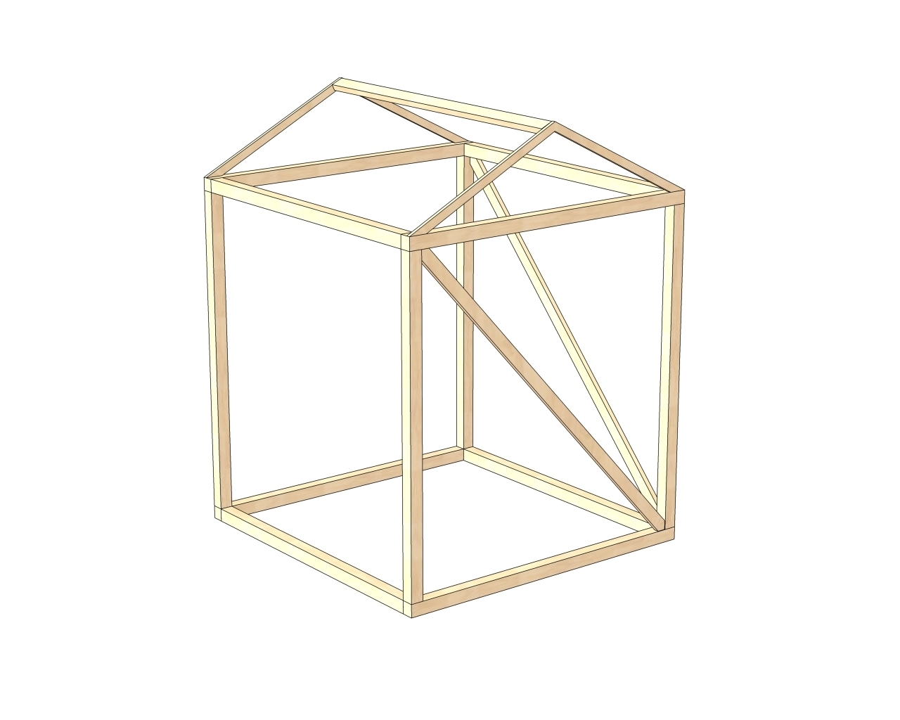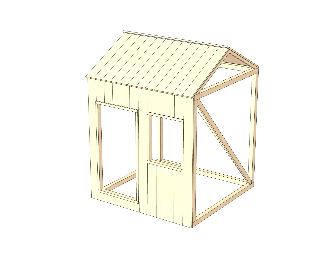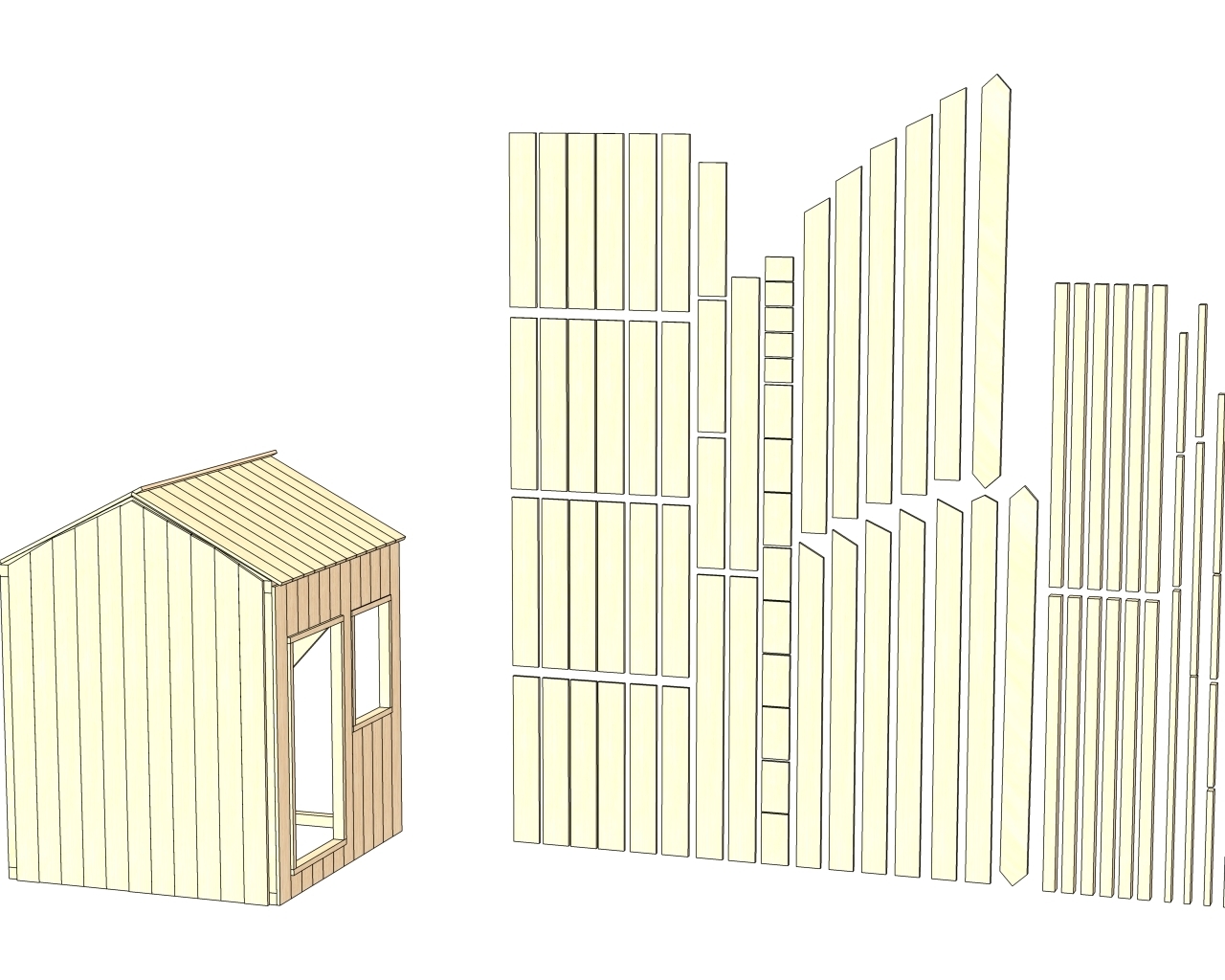 Пришли в итоге к самому простому и унитарному, с точки зрения размеров и материалов, варианту. Маленький домик (в итоге нихрена он не маленький, просто хотели ещё больше) с двухскатной крышей, дверным проёмом и окном. Сразу обговорили что боковые стены не будут полностью закрыты (на них в итоге не хватило денег). Далее подробное описание материалов и их стоимости.