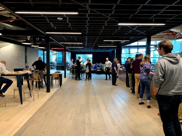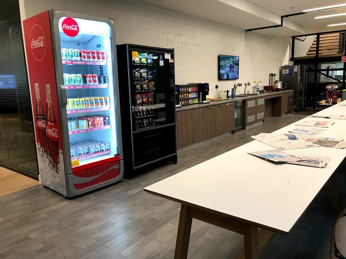 Кофейня на 3 этаже работает весь рабочий день — помимо кофе и десертов здесь можно подкрепиться сэндвичами или пиццой. Здесь всегда собирается много людей, особенно ближе к концу рабочего дня — команды обсуждают рабочие вопросы, а друзья обсуждают ближайшие выходные.