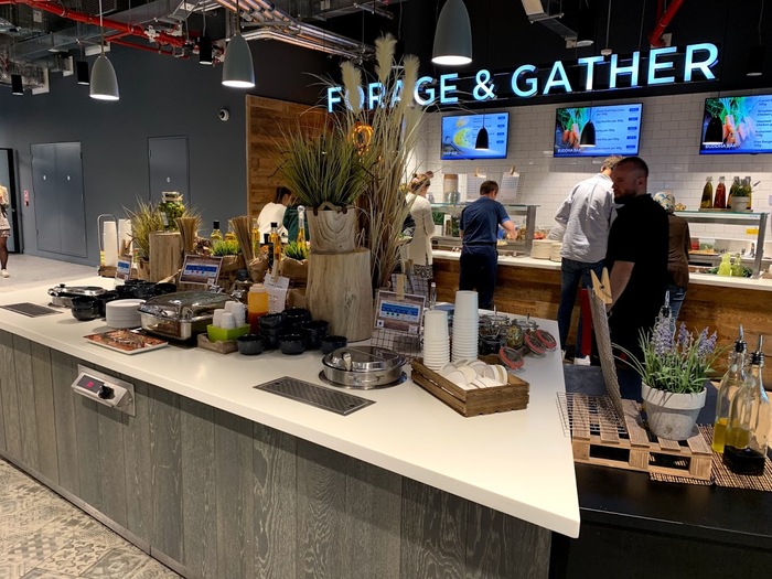 Forage & Gather — это ресторан полезной пищи: салат-бар с широким ассортиментом свежих продуктов и деликатесов, 2 вида горячего, 4 вида супов, разнообразные десерты и напитки.