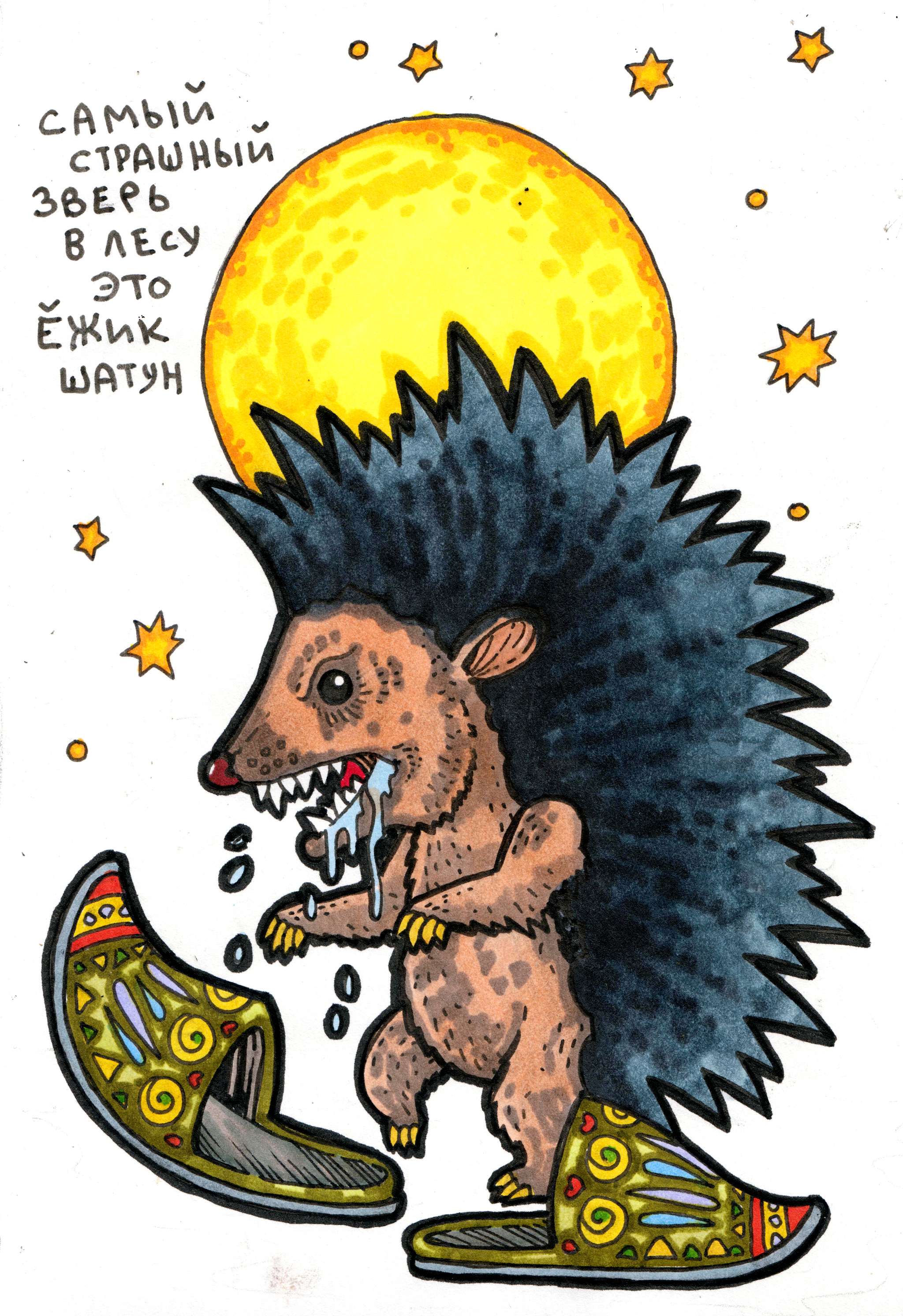 стал ему пальцем колючки трогать легонько, так ёж ему палец до кости прокусил.