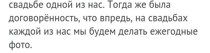 В 2017 году фотография была сделана на свадьбе одной из нас. Тогда же была договорённость, что впредь, на свадьбах каждой из нас мы будем делать ежегодные фото.