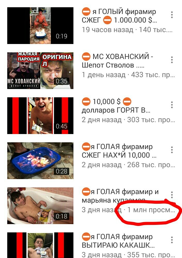 Всем привет. Сегодня YouTube значится как мусорка. То-есть горящей мусоркой. А причины "поджога YouTube огнем деградации" никто не знает. Вообще из-за Фирамира начался весь остальной "срач". И вы только посмотрите сколько набирает просмотров его канал. 1 Млн. Конечно есть больше. Как у PewDiePie. Но черт это же не годный контент. Но давайте предположим он печатает фальшивые купюры на принтере. Но факт остается фактом что это неуважение к пользователям. А вообще раньше все считали что он просто снимает "сериал". И все думали что он скоро закончится. Но это не так.