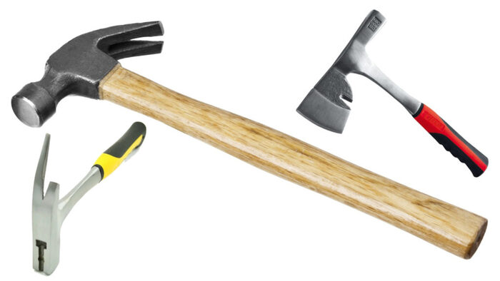 Часто задняя часть молотка имеет прорезь для дёрганья гвоздей: