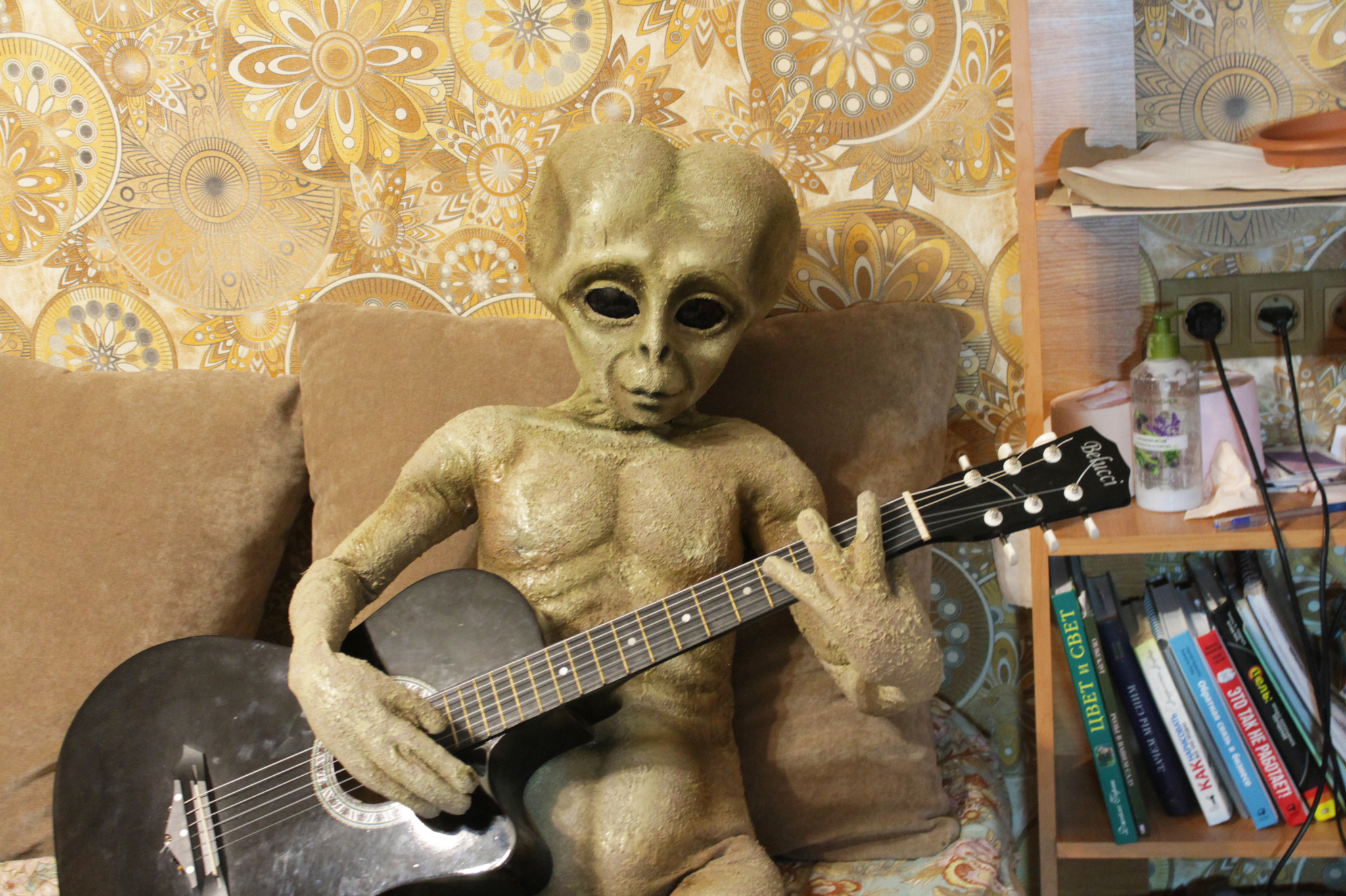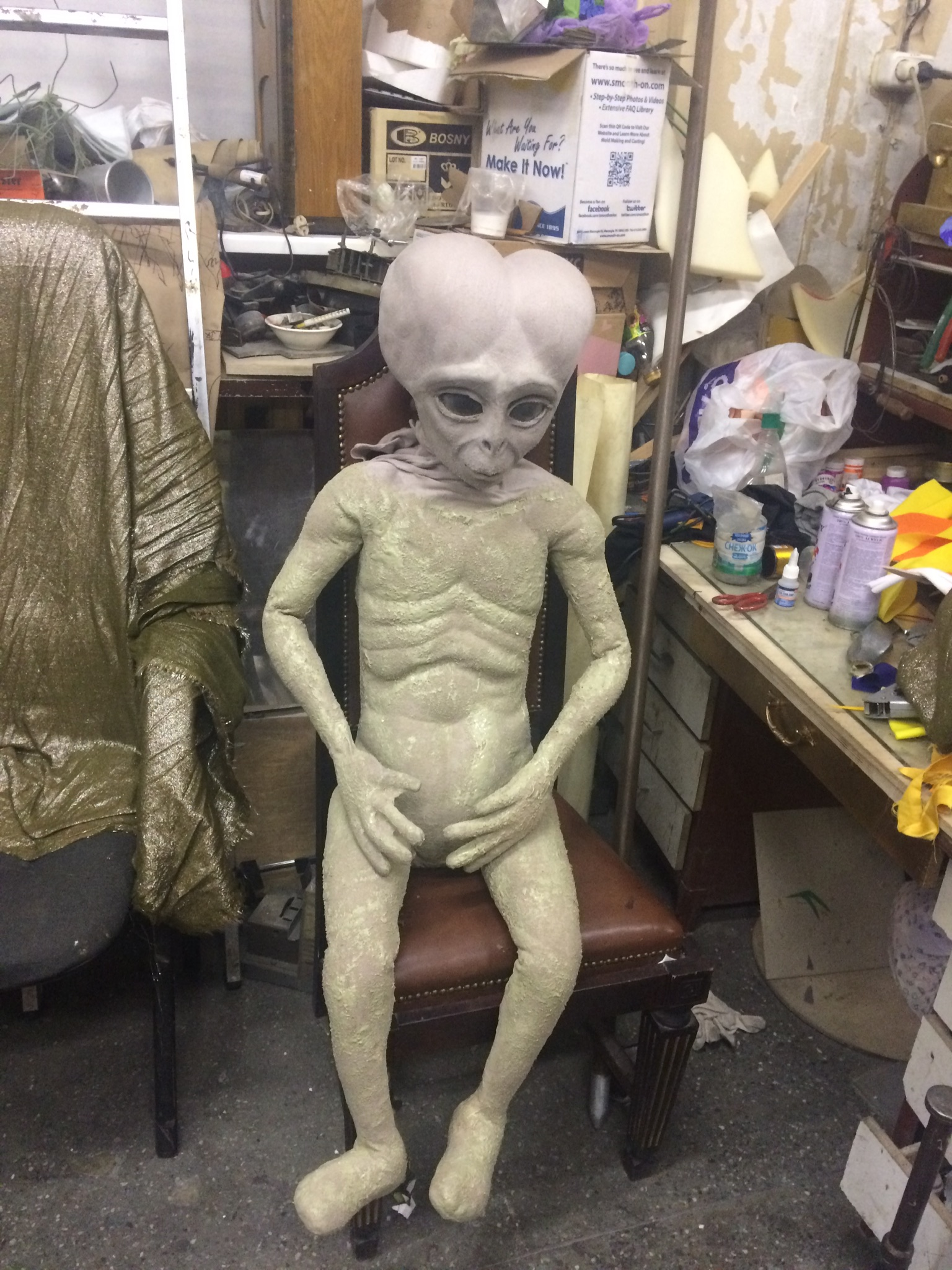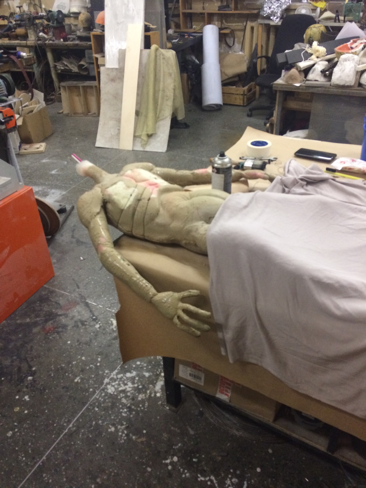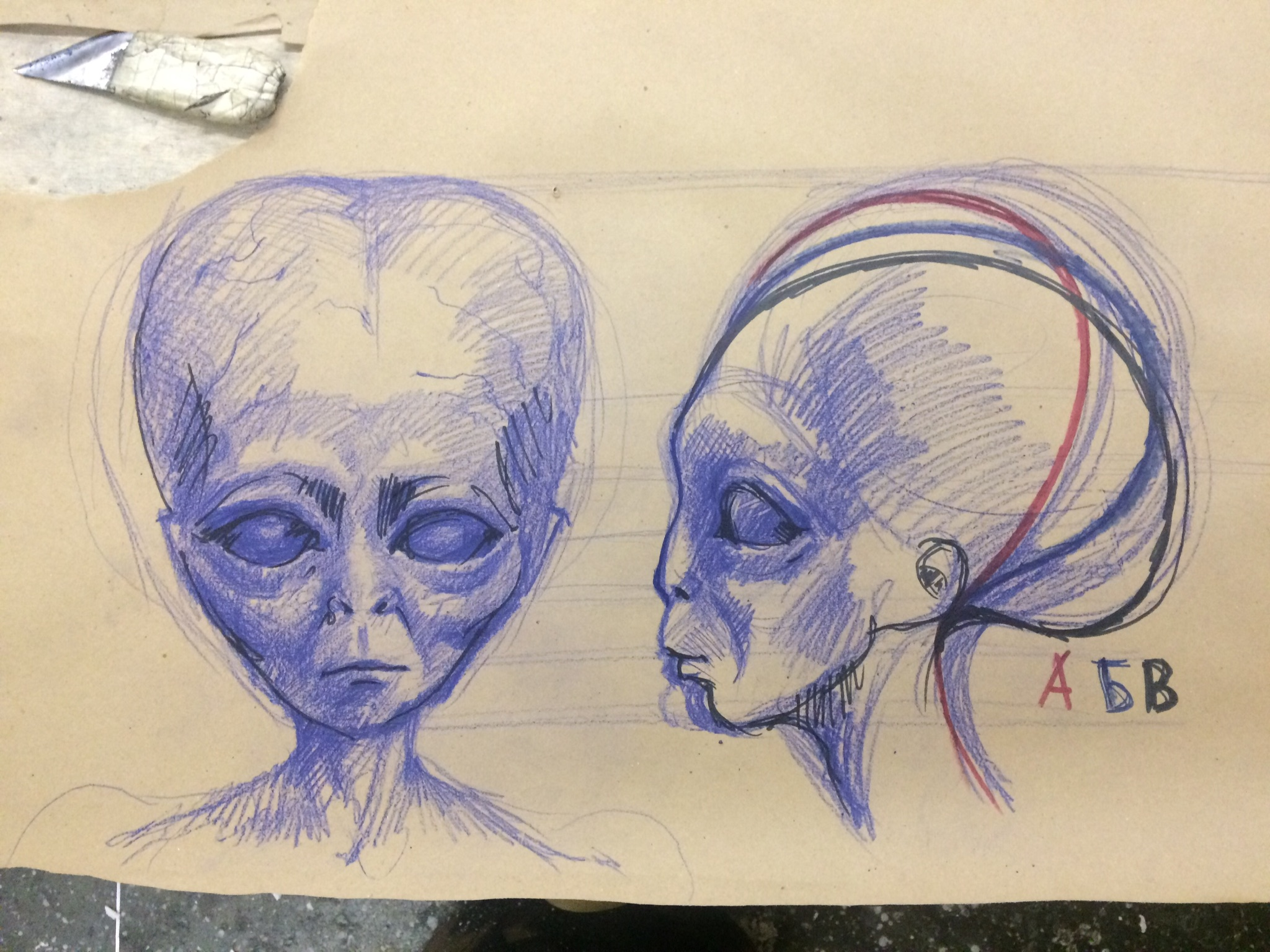 Голову делал мой коллега. Нарисовал эскиз, вырезал из пенопласта, оклеил папье-маше, тканью.