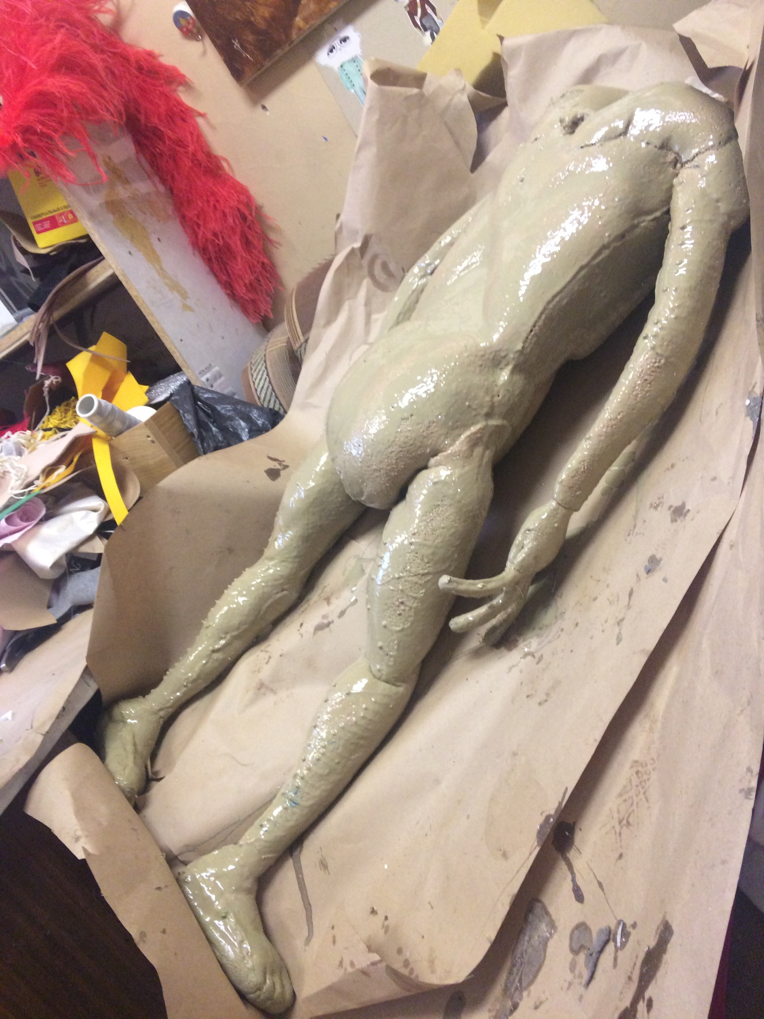 Затем нарастили голову по просьбе заказчицы, а также добавили фактуры на тело, использую полиуретан Brush On.