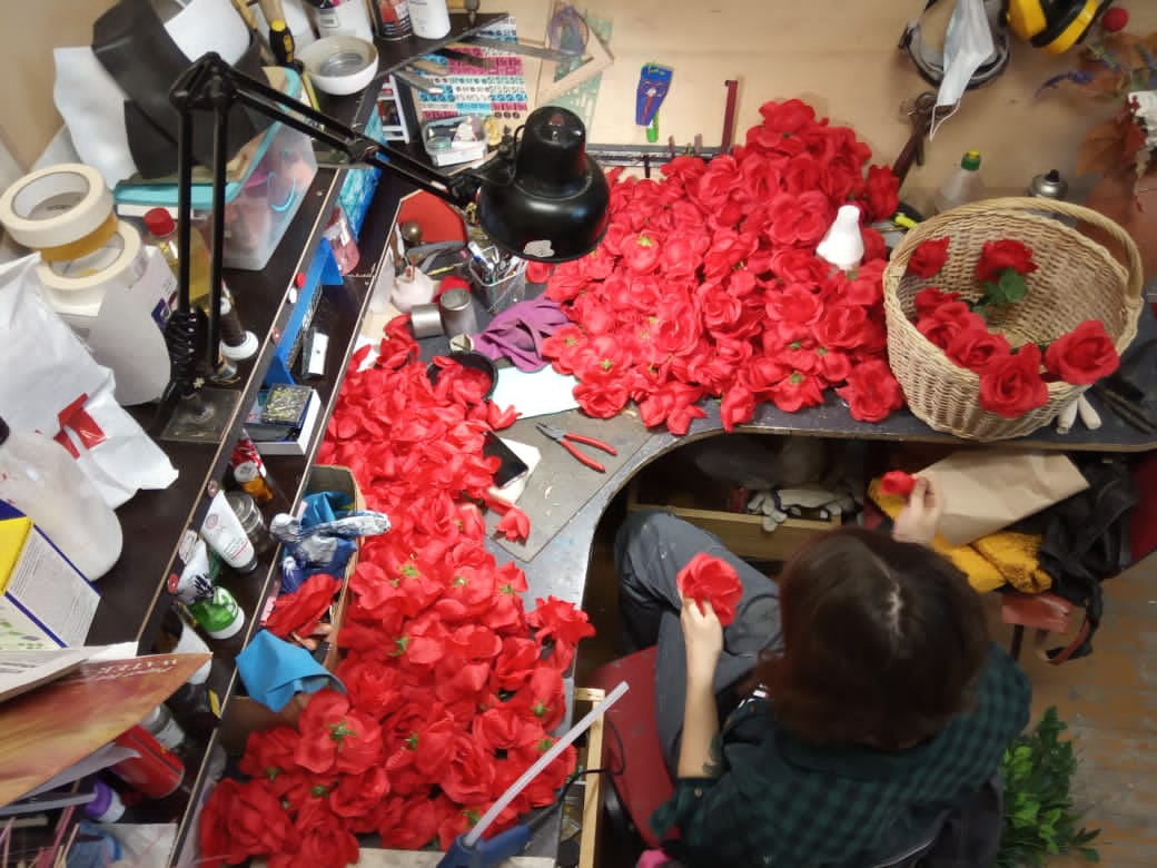 Маков купили первоначально 500 штук. Режиссер сказал "Маловато будет", я сделала еще штук 500-700 из роз.