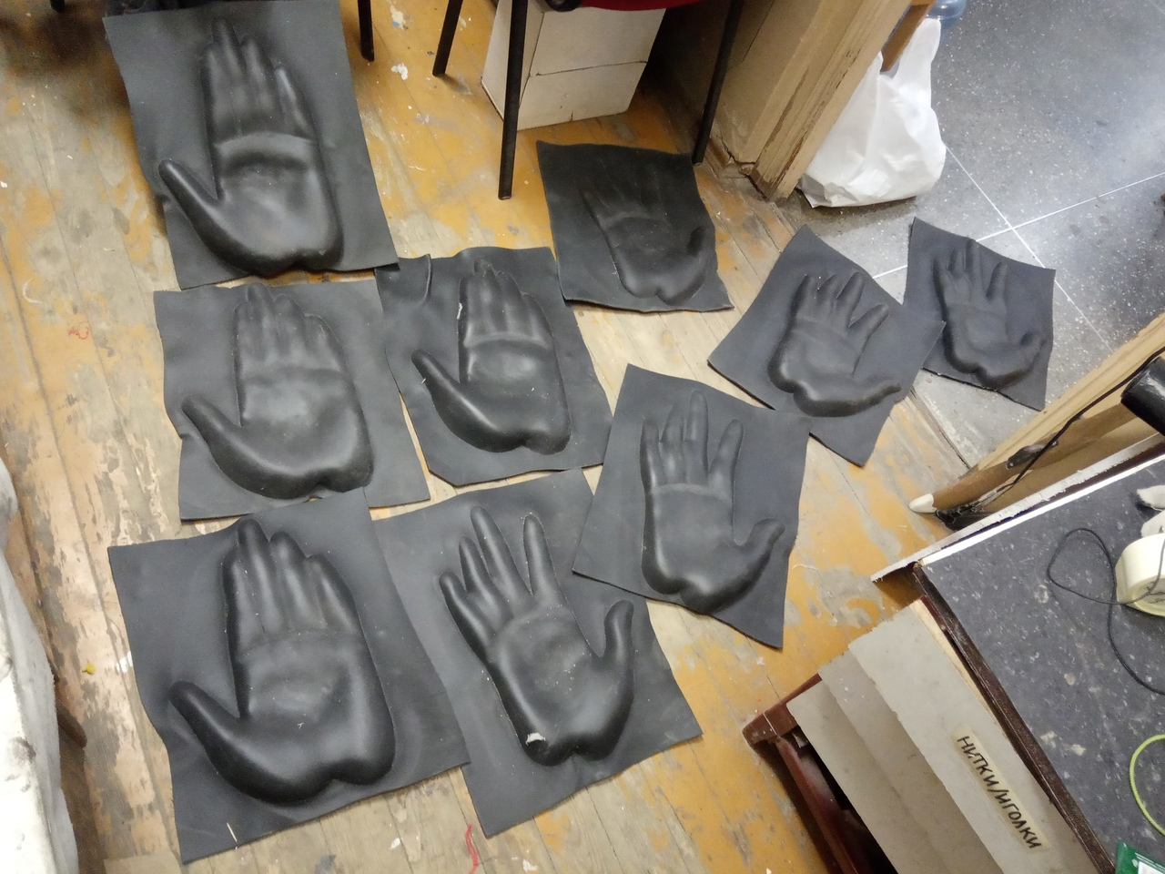 Руки. Поликарбонат, зеркальный пластик, Ева-пена. При том девушка делала их одна, с помощью замысловатой формы для ЕВА.