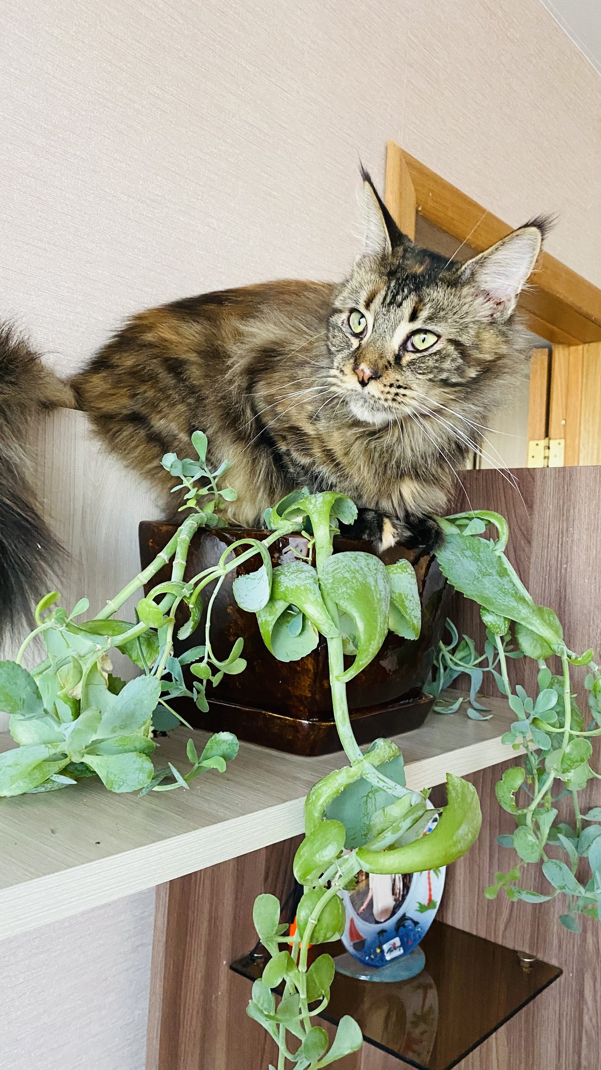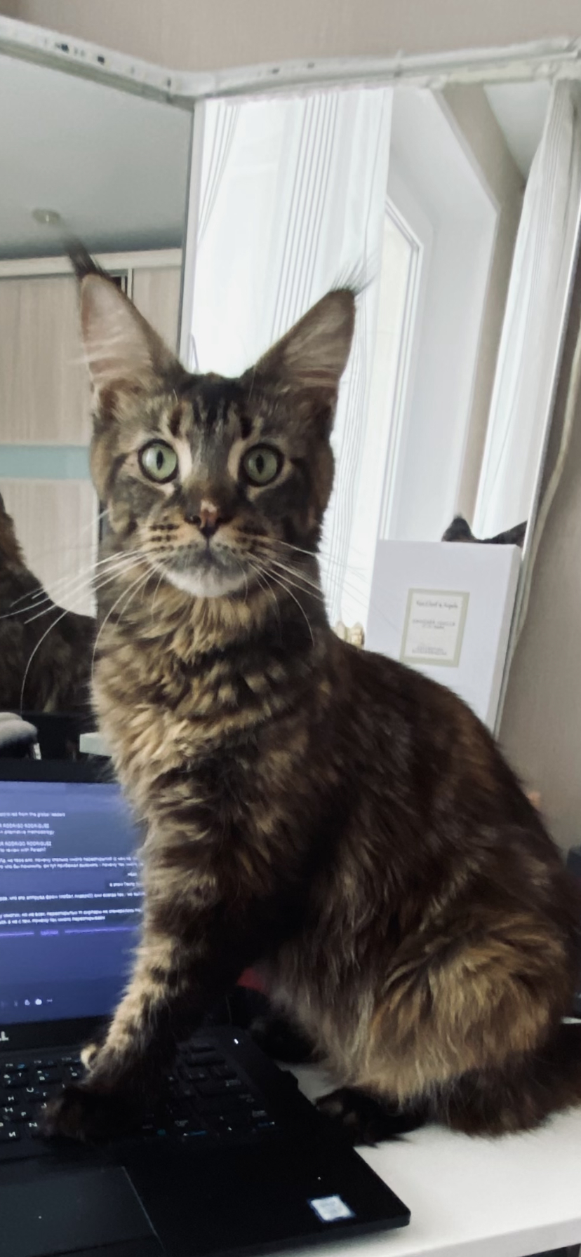 А потом Динка угасла за три дня. Рак молочной железы. Усыпили. Отвезли на дачу, похоронили. Папоротник из леса выкопала, посадила. Всегда с Динкой здороваюсь, приезжая на дачу. Остался только Шурка, попугай. Год и наверно, немного дольше, мы жили без кошки. С сыном договорились- любая кошка, пришедшая ко мне на ДР- это наша, это Динка…Однажды утром я проснулась и поняла- все, хочу кошку! Муж болел, лежал с температурой… А я открыла Авито и забила в поиске «котята». Первое сообщение было «Продажа мейн-кунов даром», звоню туда- мне сразу ответили и сказали, что да- настоящие мейн-куны, «ага-ага», прям поверила, но было пофиг. Тормошу мужа, через час мы приехали. Муж остался внизу, ибо с парковками в НН - беда, а я и сын поднялись в квартиру. Оказалось, что у заводчика сгорел дом, где были вольеры и еще много разных условий…И сейчас она оставляет себе немного котеек, а остальных отдает) Ну и мы не за родословной приехали, а за кошачьим, любым) Сын сразу уперся в одну кошку, заводчица ее называла Яркая