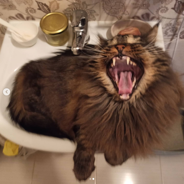 Теперь про характер мейн-кунов. Первое, что я отмечу- это активность. Ночная дурная активность. Наша Сирена команду «апорт» выучила очень легко, просто от скуки: она ночью приносила в кровать дразнилку, мы выкидывали дразнилку с кровати и я говорила «апорт!», кошка с удовольствием мчалась за игрухой и приносила ее обратно)))И так раз 15 за ночь… Команда «апорт». - ☑️. Команда «б.я, Сири, еб твою мать!»- тоже выучена и отточена)))