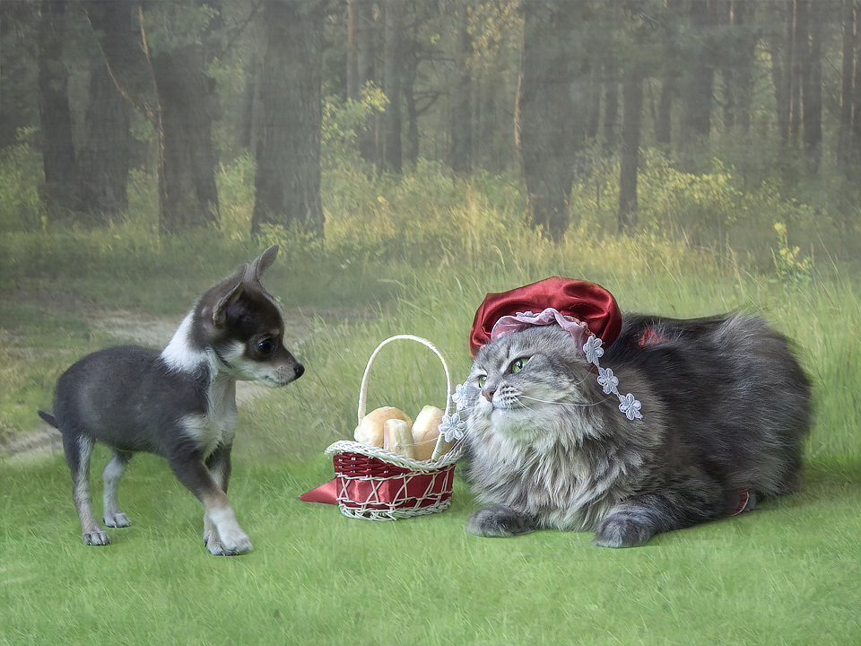 79 Lifechaser Про красную шапочку 7 лет назад Животные Кот Собака Сказка Красная шапочка Тег Волк Пирожки Длиннопост