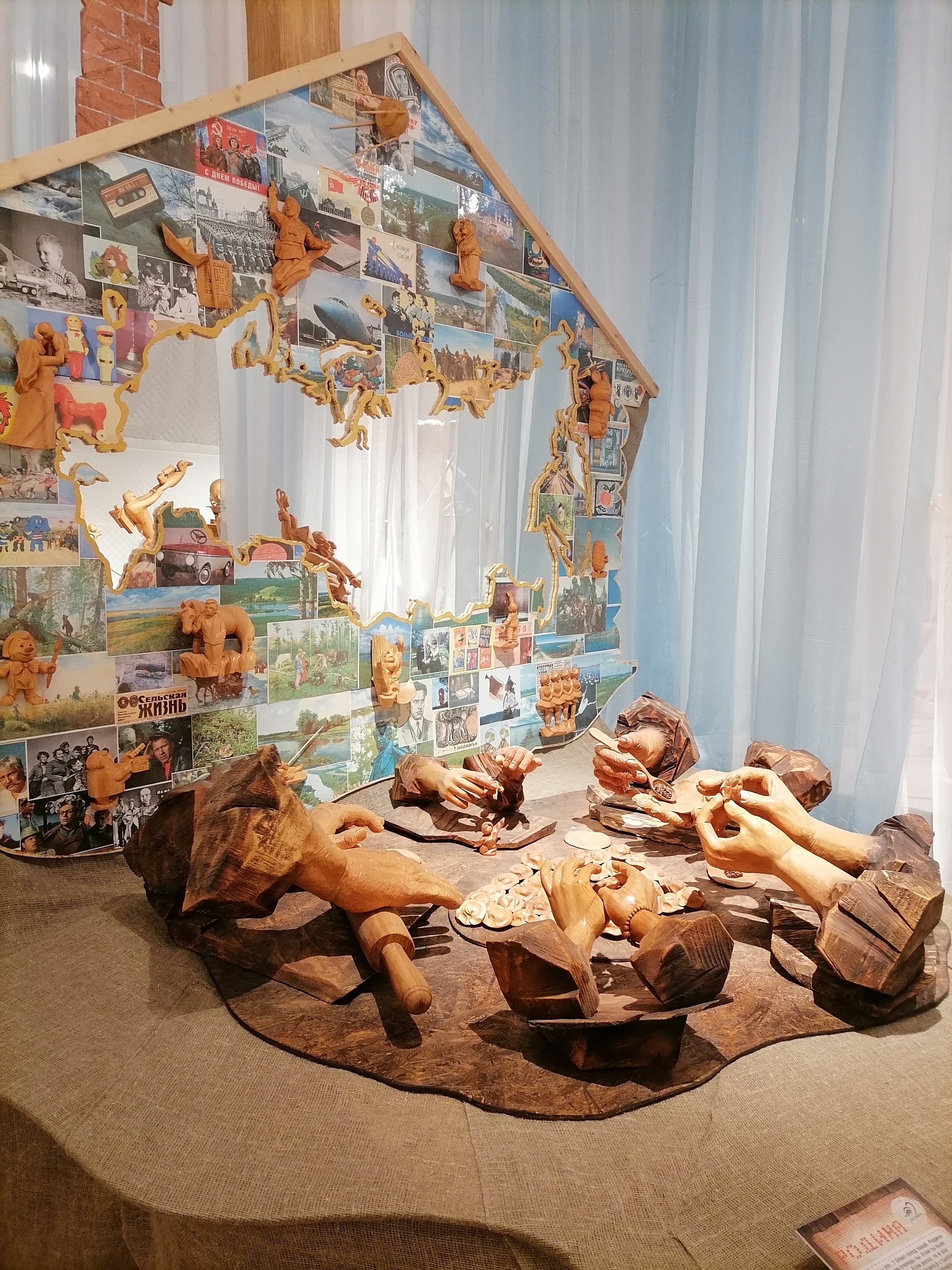 Поразило то,что все экспонаты созданы из цельного кедра.Прямо всё пространство занимает этот пьянящий запах дерева.