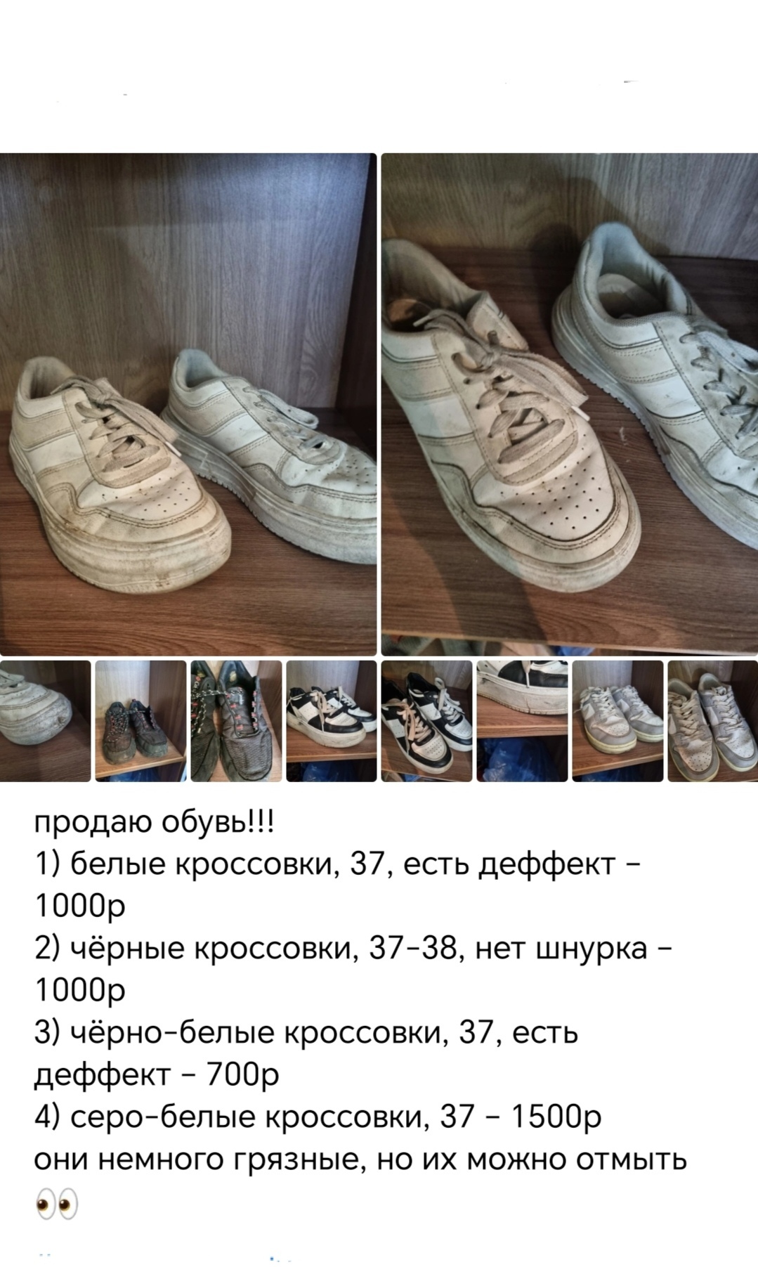 То есть, вдумайтесь. Девушка пытается продать грязные, деффективные кроссы, которые и даром-то не особо кому нужны. Продать за нихуя не символические (особенно для студентов) деньги