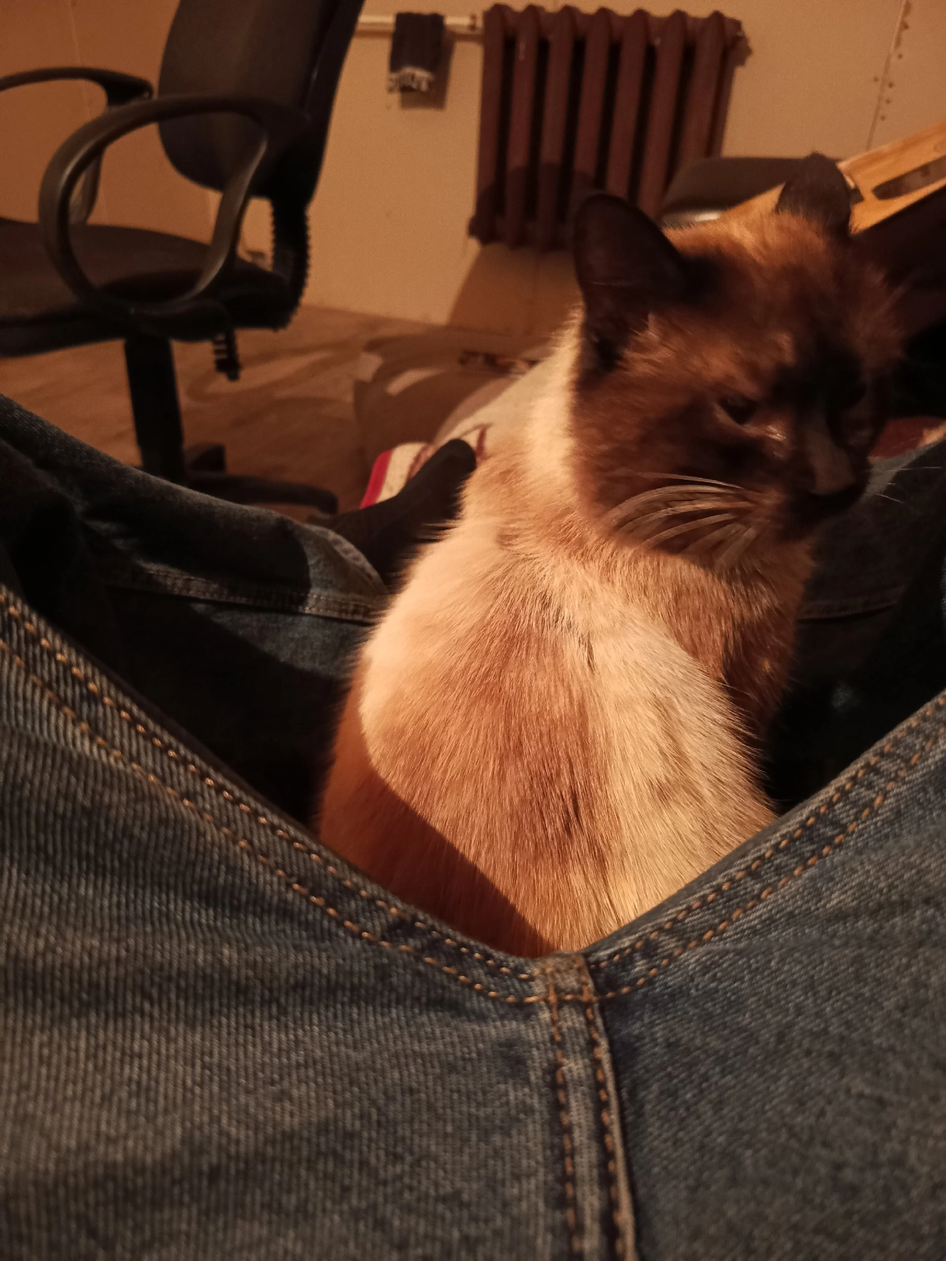 Ко мне на руки забрался кот. Я этого не ожидал, так как у моего кота вредый характер и он позволяет себя гладить изредко. При этом, если ему что то не понравится - он больно кусает и царапает. Тут же он забрался мне на руки. Совсем как домашний и ласковый. Смотрю - у него пасть открыта и не закрывается. Залез туда пальцами и вынул рыбную косточку - хребет. Думал - кот меня цапнет за боль и неприятную процедуру. Кость оставила ранку в десне. Он же, чего раньше никогда не было, замурлыкал и обтерся бошкой об мои руки.