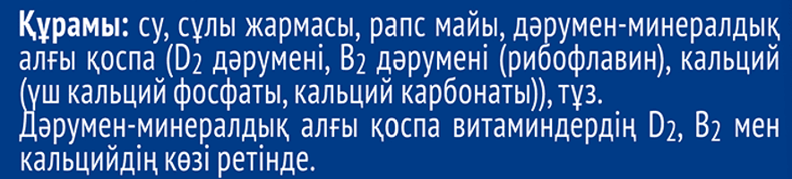 Как видите, и су и сулы жармасы – одинаковы. Только масло у испанцев кокосовое, а у нас рапс майы. Но рапс майы, оно вообще не хуже. Как говорится, что где растет. Плюс витаминки. Всё! Идеальный состав.