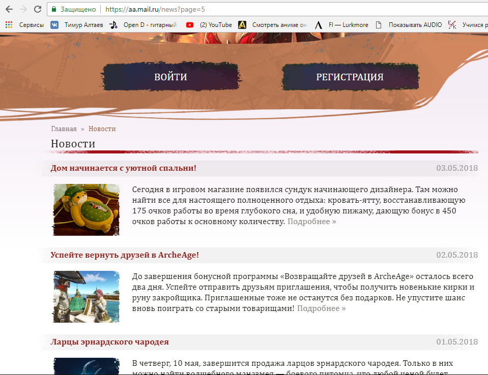 Последний раз заходил месяц назад и оставил конструктивную критику ArcheAge, когда разработчики ушли в запой с 1 мая по 10 и сервера игры лежали, ни компенсации у кого была платная подписка, ни извинения со стороны мейла не было.
