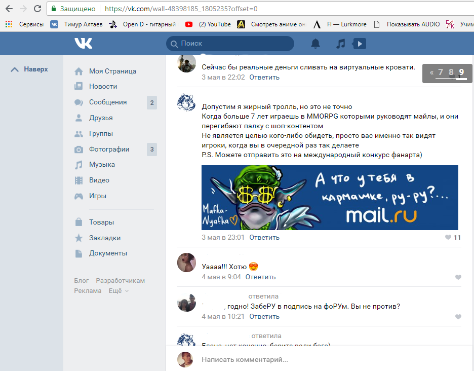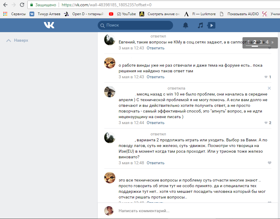Далее я заглянул в фанатские группы серверов "Невер" и "Ашьяра". Срачики, междусобойная болтовня, ребята не в курсе о том что игра не работает.