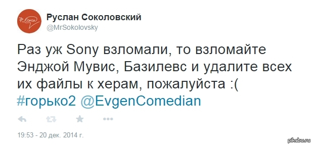 2886 sokolovsky Про некоторые российские киностудии 10 лет назад Неплохая идея, нет? Хакеры Sony BadComedian Горько Горько 2 Российское кино Фильмы X (Twitter)