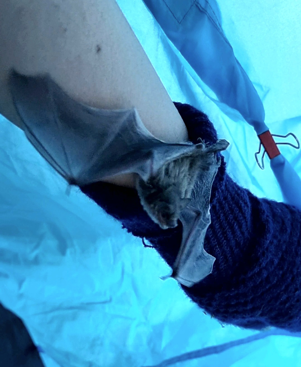 С помощью волонтера из «Листоноса» удалось установить, что у меня оказался нетопырь Куля. Подросток, не взрослый. После того, как стало понятно, что животное прямо сейчас не помрет, надо было выяснить, может ли он летать. Так вот, он не мог. Спархивал с руки и падал. То ли слишком ослаб, то ли был мал и рано вылез из гнезда. Так что мои надежды на быстрый выпуск рухнули. Мыша предстояло выкармливать, следить за весом и разлетывать (процесс мне подробно объяснили).