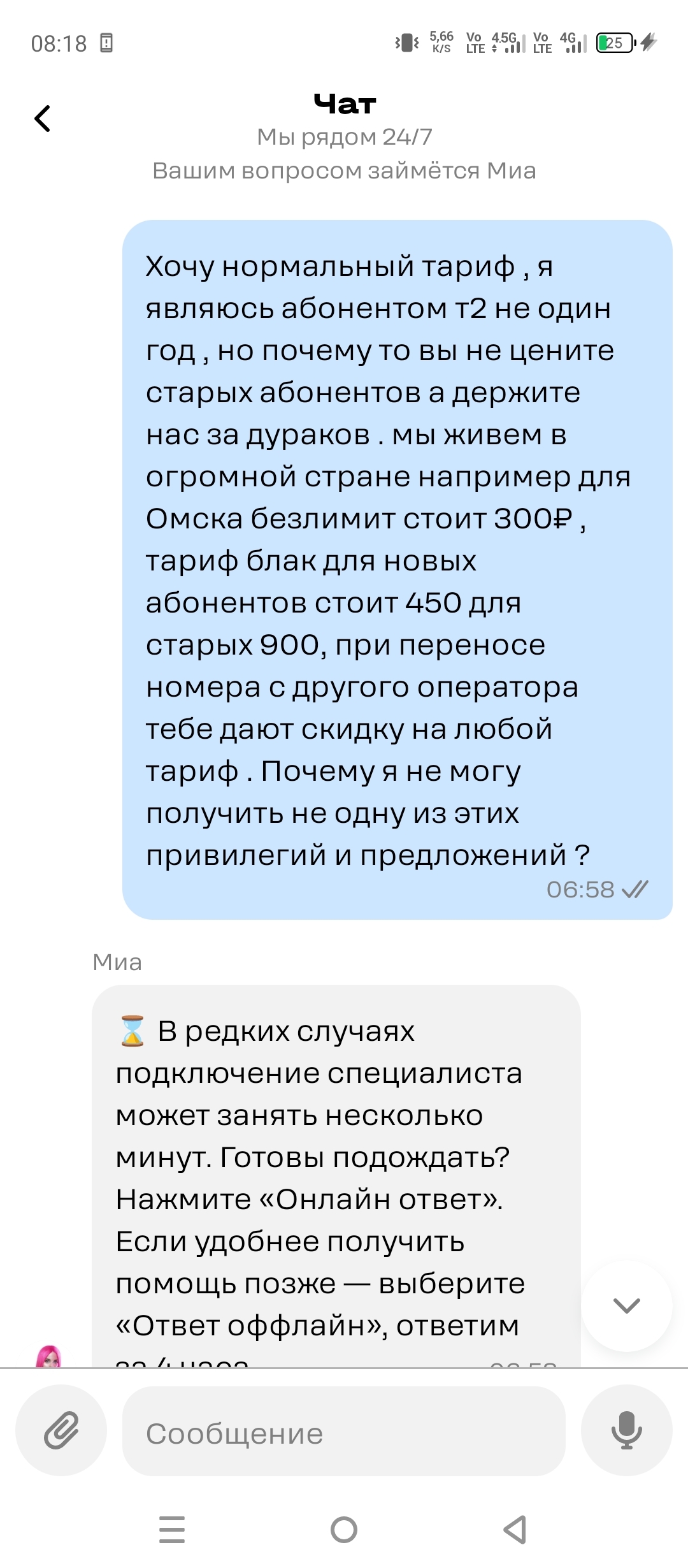 И так скоро новый год , время волшебства и чудес и наверное именно поэтому Т2 считает старых абонентов сказочными героями в упряжке деда мороза . Ну так вот от одной симки я избавился . Второй номер терять жалко . Щас у них проходят акции тариф безлимит за 300 р перейти со своим номером на РТ и получу связь т2 , с номером т2 ты на эту акцию не попадаешь . Далее тариф блек для новых абонентов он стоит 450 р а для старых 900 но конечно со скидкой от мии 810 . Далее мы живем в одной большой стране и в Омске один из тарифов стоит 390 рублей с безлимитом . Т2 какого лешего ты такой нехороший? Почему так тебя что мошенники укусили иначе это не назвать .