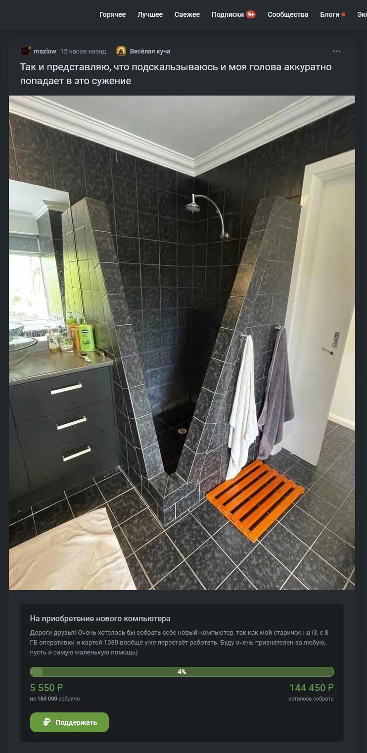 Ссылка на пост: Так и представляю, что подскальзываюсь и моя голова аккуратно попадает в это сужение