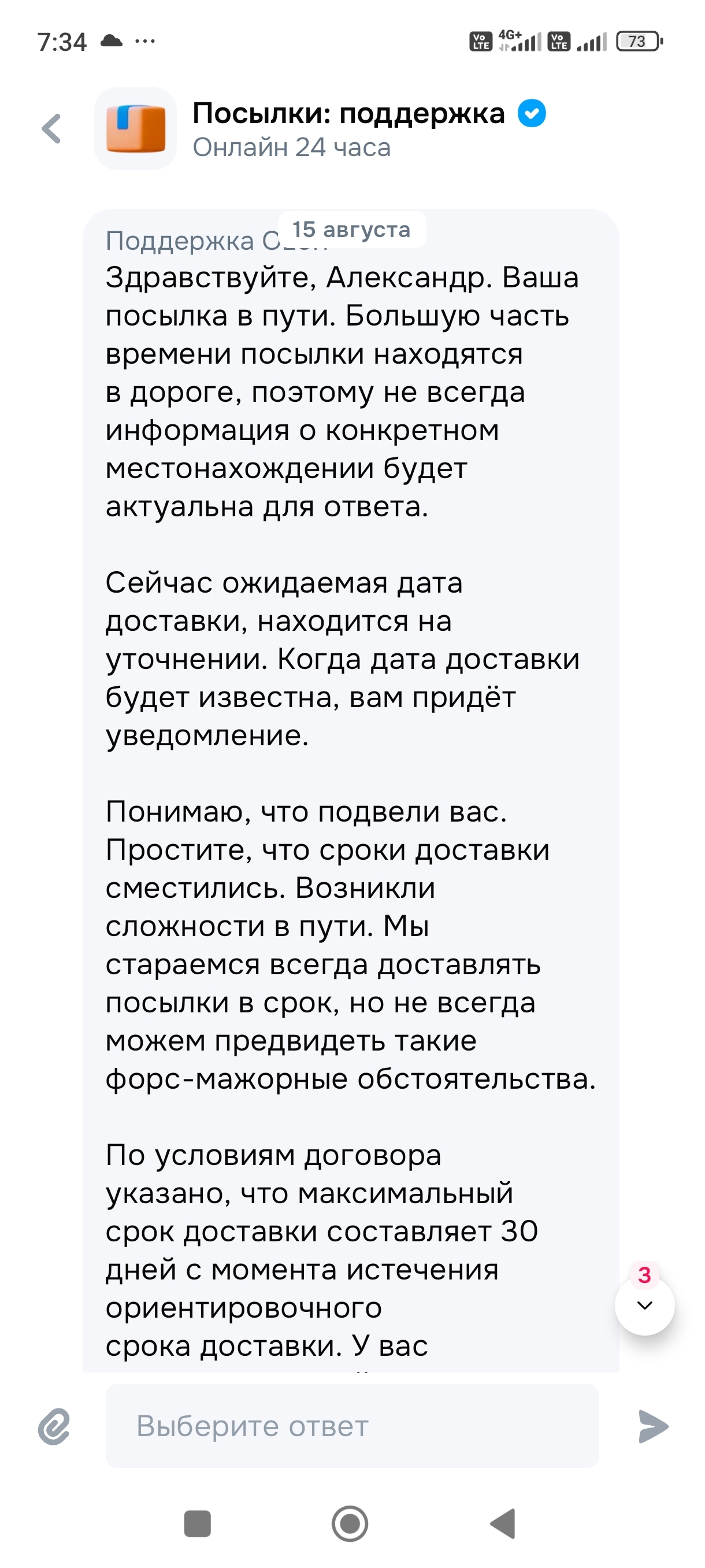 Появился новый "рекордсмен" по времени доставки посылок, который сместил "почту России", на второе место по сервису и времени доставки. Встречайте это озон, ужасно! Ни кому не рекомендую, доставка должна была состояться 12 августа, теперь же посылка не известно где и дойдет ли она