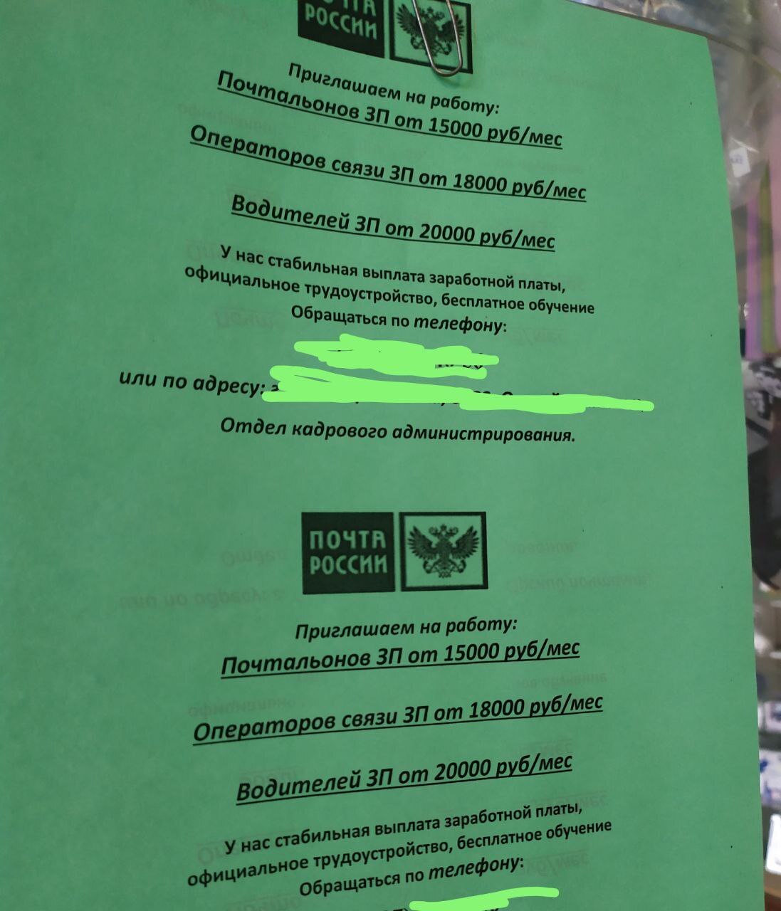 В моём почтовом отделении висит бумажка "требуется оператора, зарплата до 33700". Только вот не написано, от какой она. Место действия - небольшой райцентр в 76.