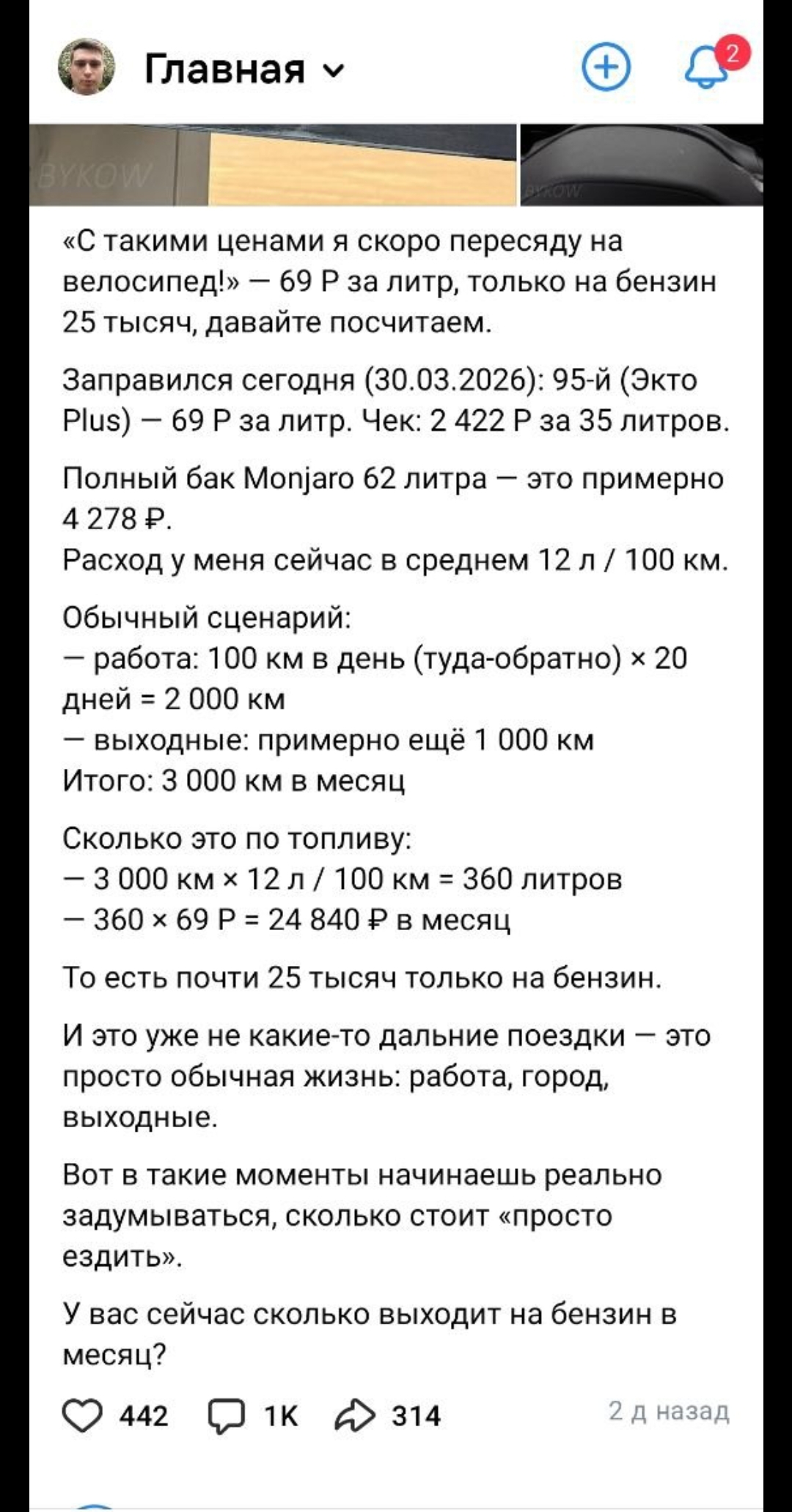 Попался мне недавно в одном из чатов данный скриншот (смотрите ниже; именно в таком виде я его увидел, других подробностей не знаю). Человек на скриншоте рассказывает, как дорого стало заправлять Geely Monjaro.