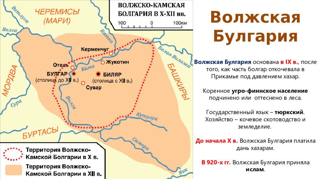 Переселившись на Поволжье, Булгары и Сувары активно осваивали земли, попутно смешиваясь с Финноугорскими племенами. В силу многочисленности и большим военным потенциалом, во главе нового государства стали булгары. К 12 веку образовалось единая тюркоязычная булгарская народность.