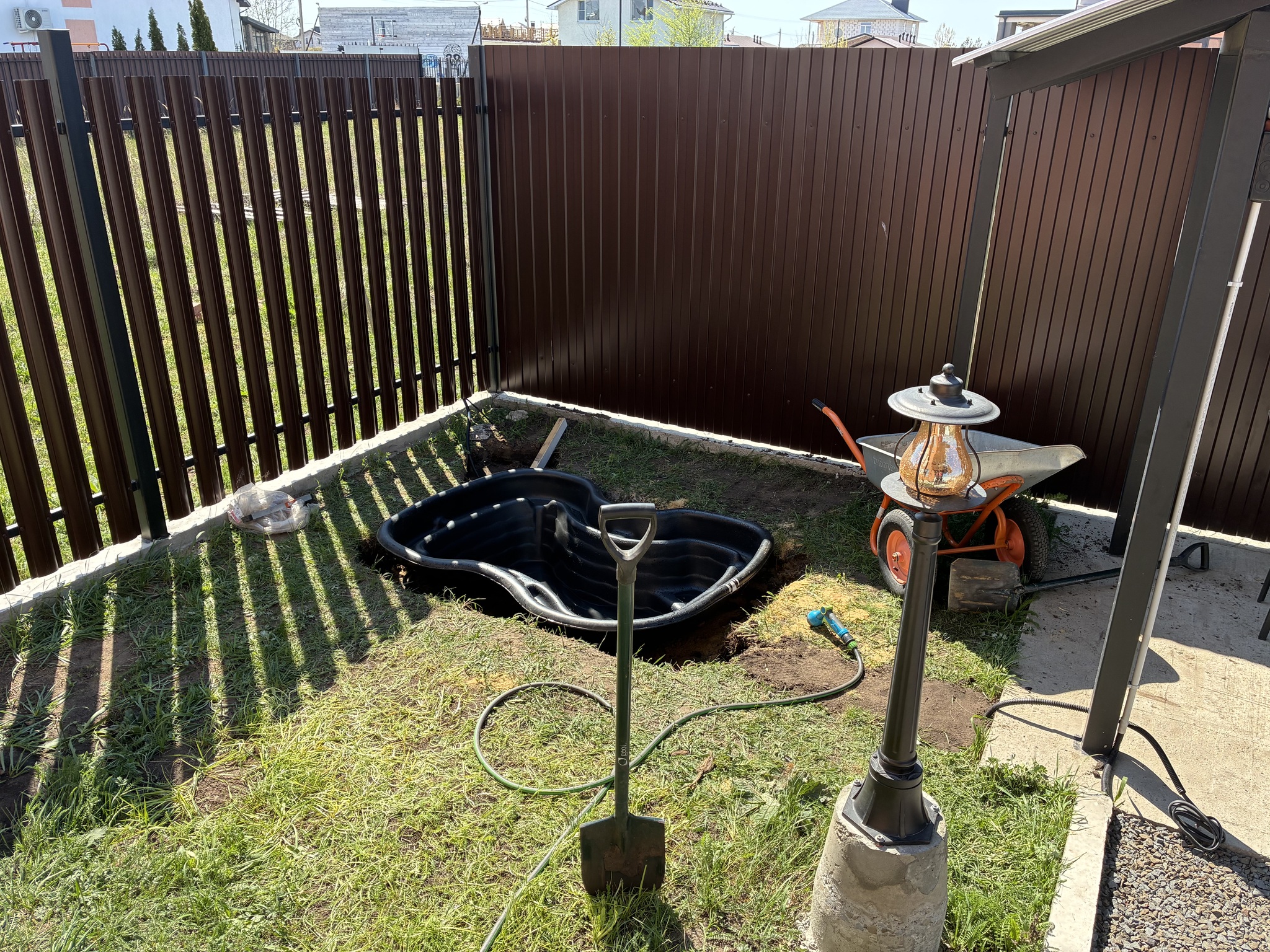 Пруд приехал. Дальше «копай, нигер, солнце еще высоко»! Благо весна, земля мягкая. Закопал.