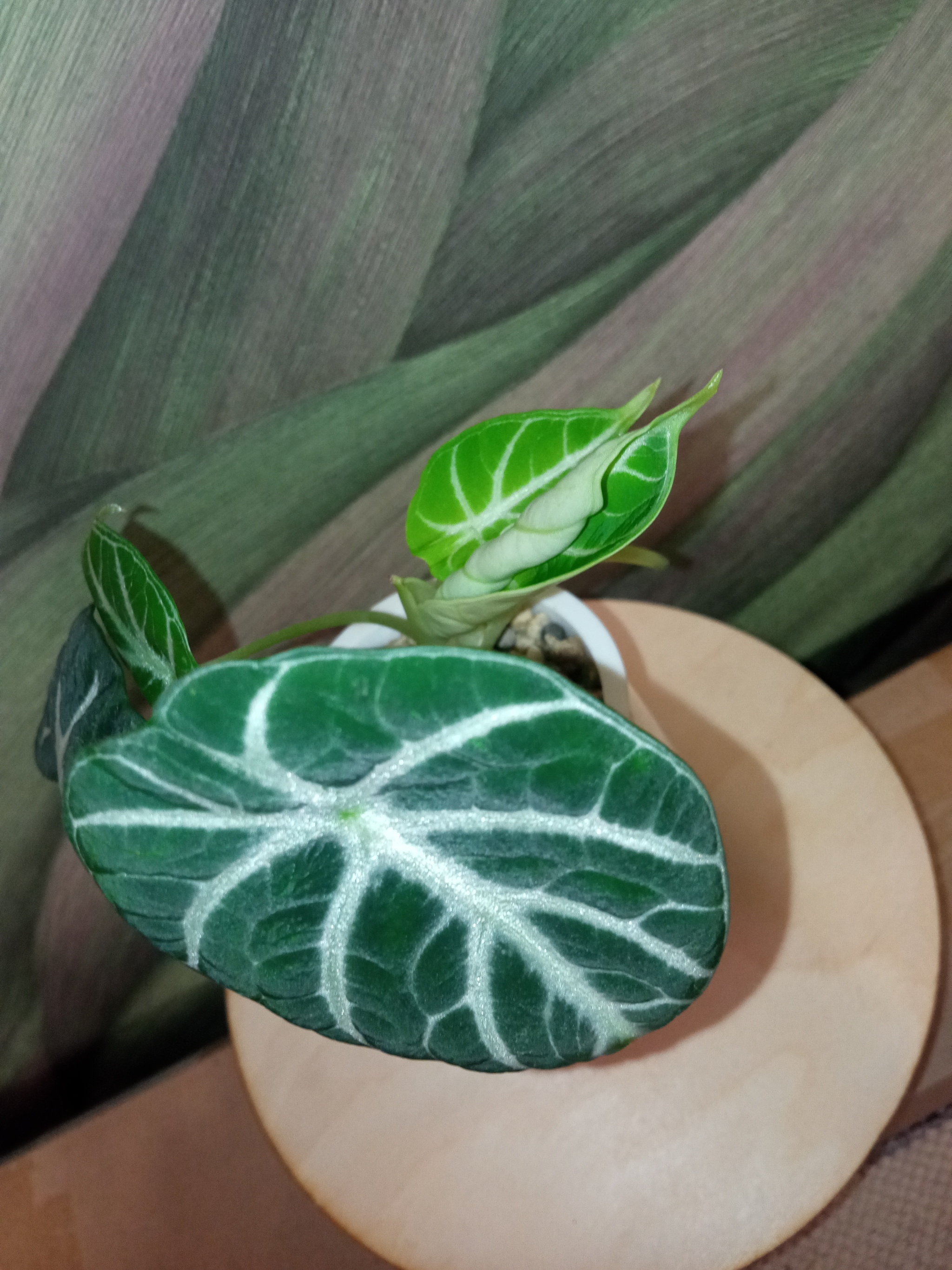 Не только алоказии, но и другие растючки у меня живут. Кашпо сама гончарила. Хвастаюсь)