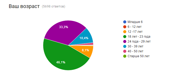 25 человек (0,4% от общего числа) - пенсионеры. Для репрезентативной выборки хотелось бы опросить, мягко говоря, чуть больше представителей старшего поколения, но, к сожалению, не вышло. Подавляющее большинство опрошенных - работают или учатся