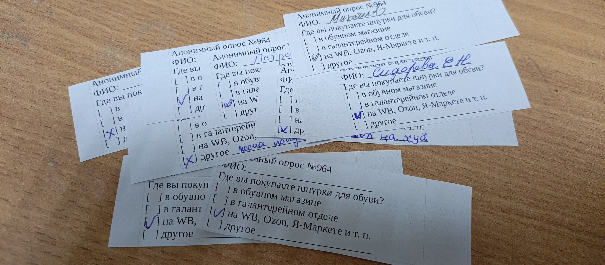 На следующий день я провёл опрос среди коллег. Все ответили одинаково: никто никогда не покупал шнурки в обувных магазинах. И не потому, что не хотел — их там просто нет.
