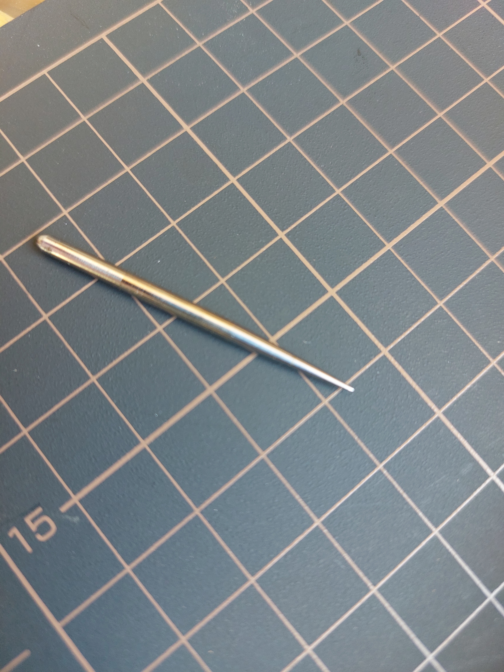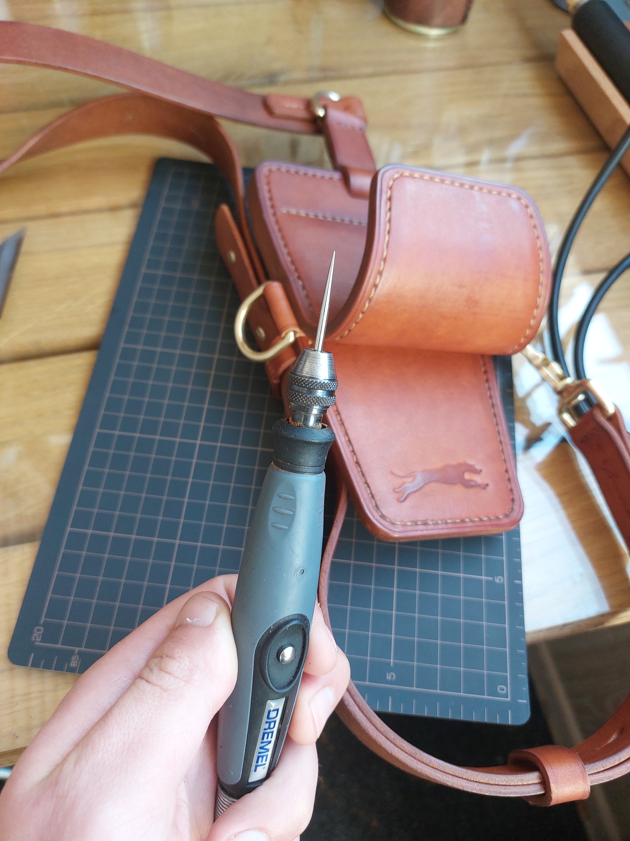 Никакими пробойниками такую толщину не осилить, и поэтому я просто тупо высверливаю отверстия в подобных изделиях. Высверливаю дремелем, в которое зажимаю что-то типа шила, которое сделал из напильника