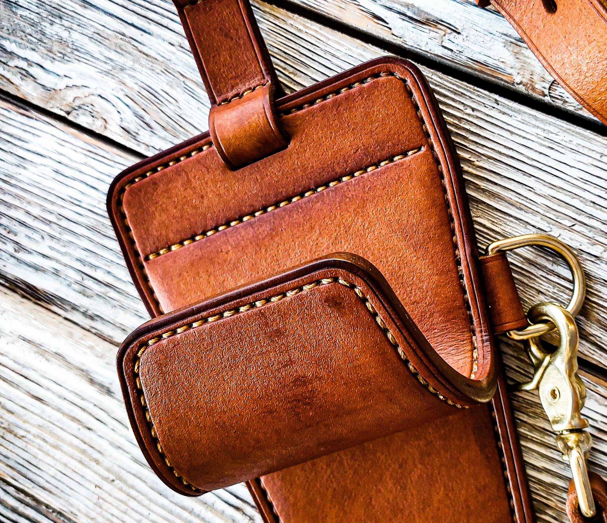 Сам крюк состоит из 4 слоев ременной кожи, общей толщиной 15мм в торце.