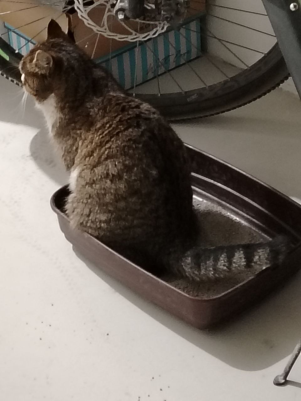 -от кошачьего лотка сильно воняет(пока нет возможности убрать его в туалет)