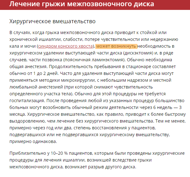 И даже если операция будет по квоте (что весьма реально), то обязательно втюхают замену межпозвонкового диска за стотыщмульёнов.
