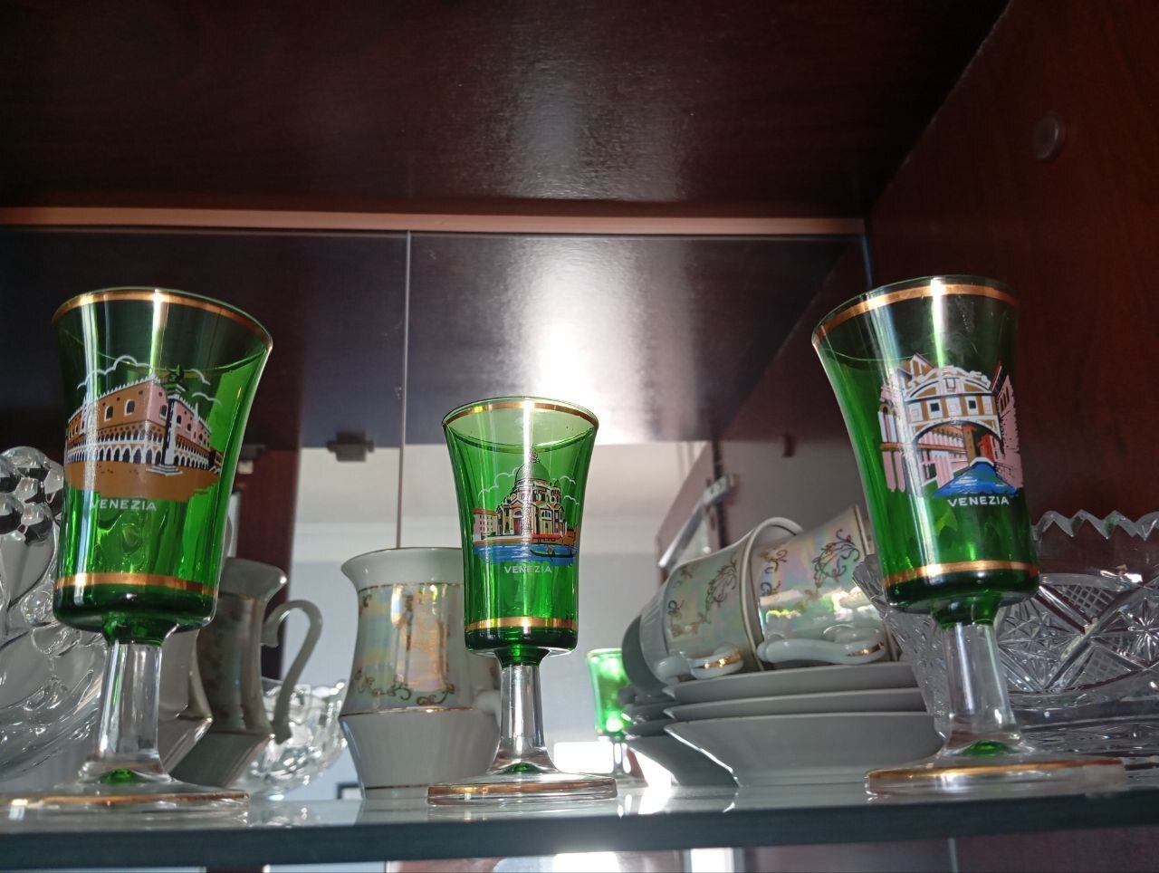 Думаю, что впечатлений от поездок батя мой получил немало. И из каждой из них он что-то привозил, причем это не какие-нибудь «магнитики на холодильник». Вот эти штуки на фото ниже – это да, сувениры: картинка-мини-диорама с подсветкой из Италии и тарелка на стену из Германии.
